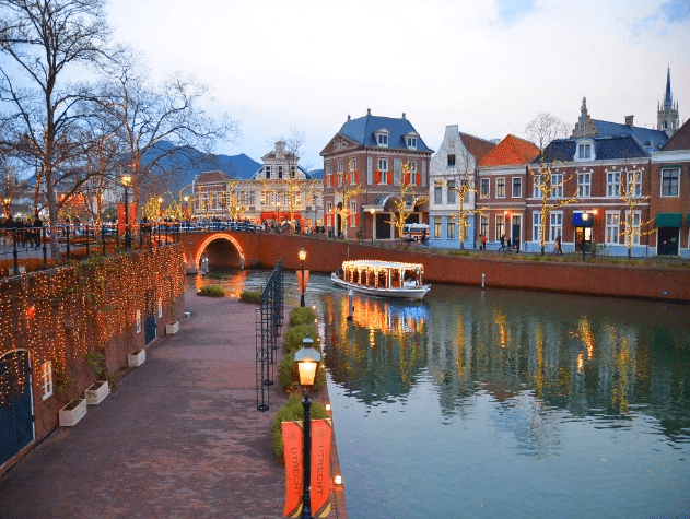 Are you visiting a theme park in Japan? It must be anime-themed. Here’s something new to offer! It is not the typical anime themed park. Huis Ten Bosch is a theme park located at Nagasaki Prefecture which recreates a Dutch town. The name of this park honours the one of the residences of the Dutch Royal Family. You would feel the European vibe when you enter this park. Its details and architecture bring you to the streets of Netherlands presenting the picturesque canals, iconic windmills, and beautiful gardens.