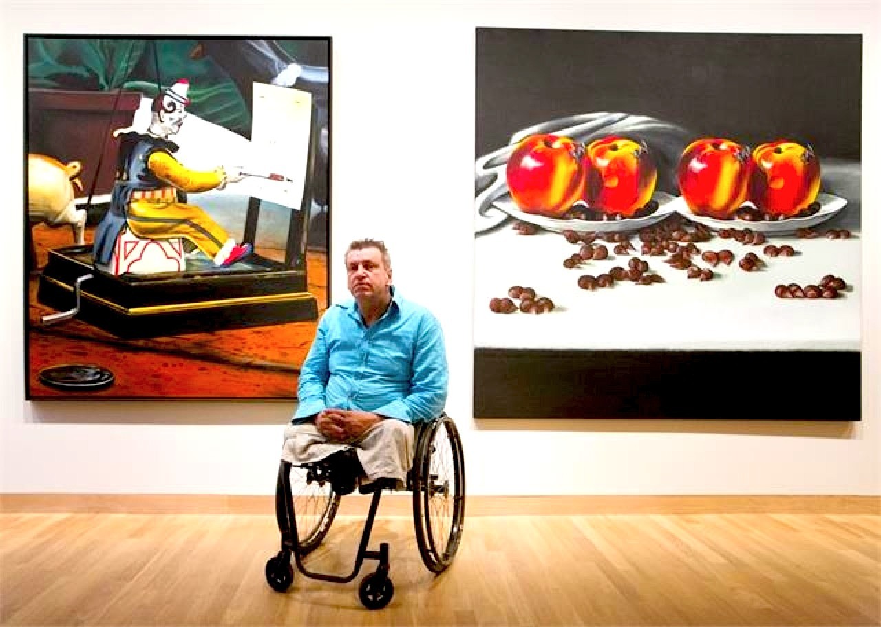 ,,Ik was een kosmopolitisch kunstenaar. Werd nog lang na dien vliegtuig in, vliegtuig uit gedragen. Ik leefde als een pop ster. Beeldende kunst spreekt een internationale taal. Ik was exponent van public art, een Warhol achtige, als bedrijf opererende kunst die later in Jeff Koons en Damien Hirst zijn voltooiing krijgt. Mijn werk zat bij de eerste ten toon stelling van Koons in Europa, Prospekt 86 in Frankfurt. Maar ik werd uit de lucht geschoten, zoals Lawrence Weiner, de concept kunstenaar over me schreef, Shot to Hell, Wishing upon A Star.”