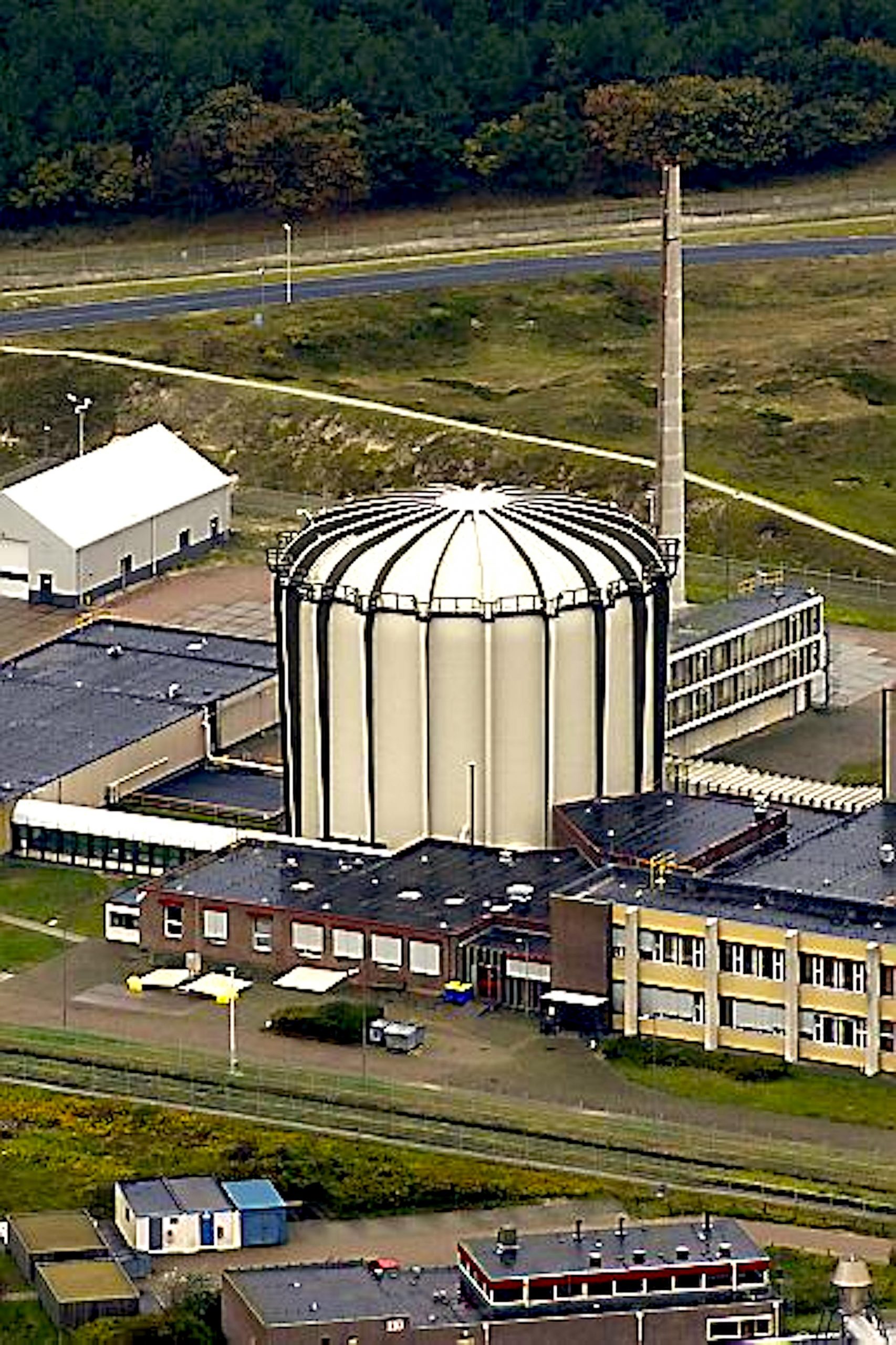 Het reactorgebouw met de vegetatie, die indringers op afstand moet houden (foto Pallas)