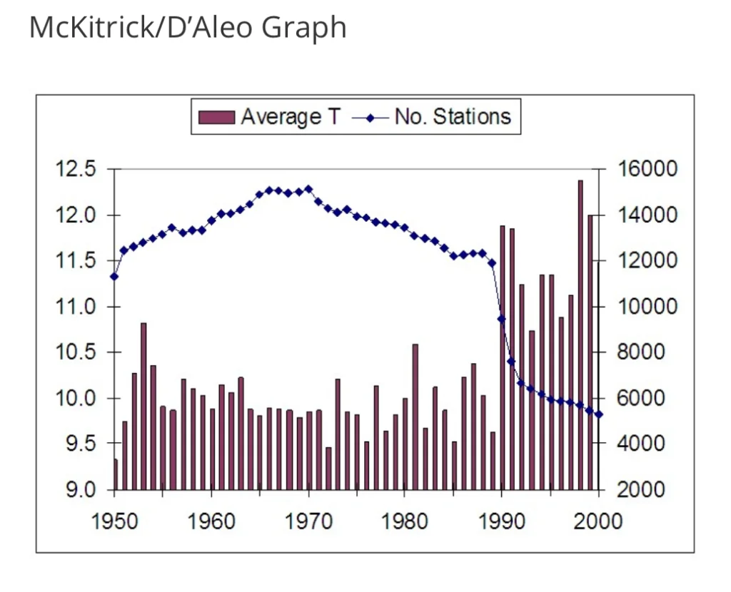 This average temperature is necessarily A number that has been derived from other numbers. There will perhaps have been some measuring done here and there, and then some adjusting, and then some adding up and some adjusting again. This is how it is with the calculation of regional and global average temperatures,  whether from satellites, tree rings, ice cores or thermometers. To be sure, every year we are told it is getting hotter, and back in the late 1980’s this was achieved for the globally averaged thermometer record by dropping out some of the colder weather stations. This had the effect of increasing the overall average global temperature, at A time when temperatures at many individual sites were dipping somewhat.