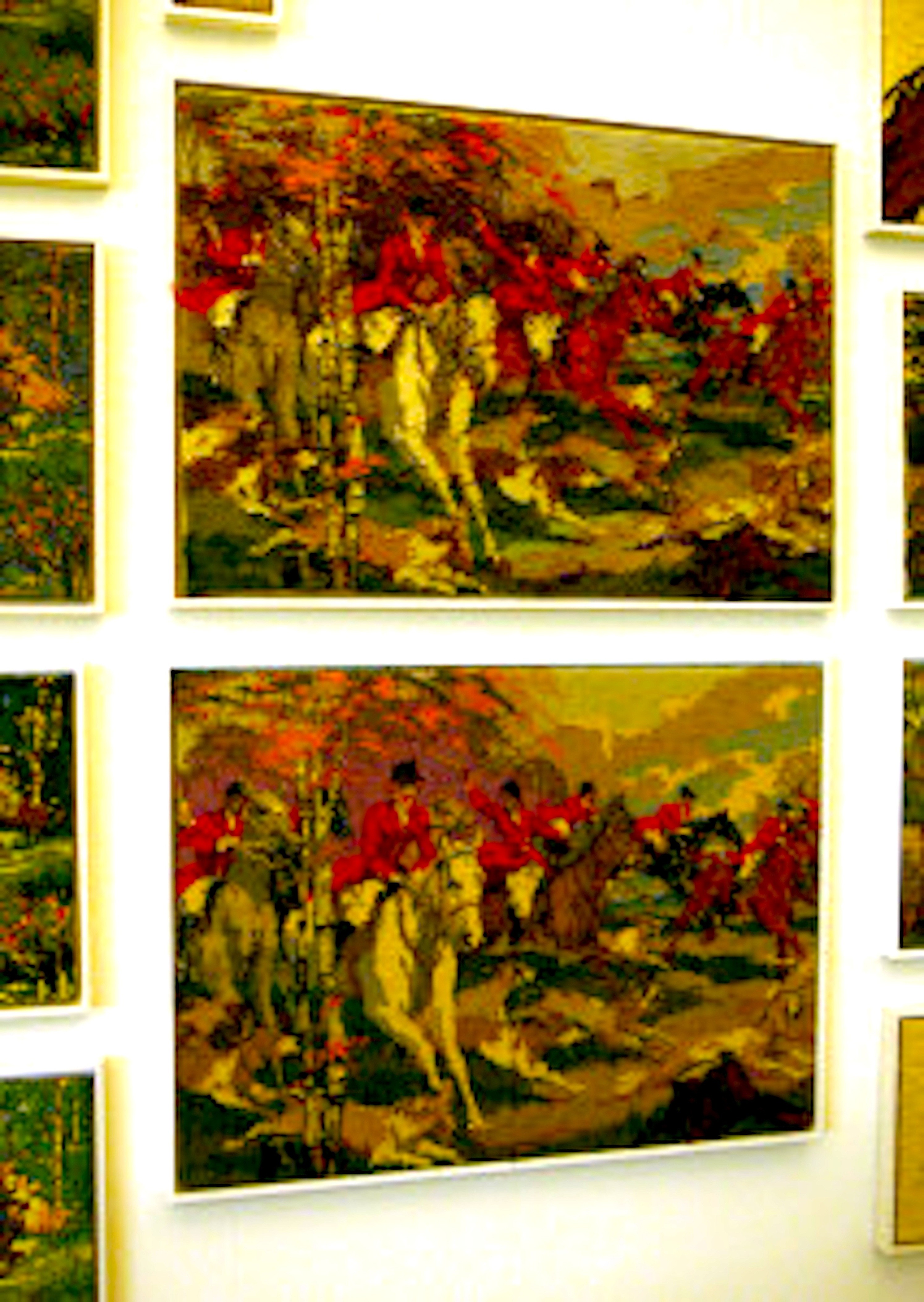 Van veel borduurwerken zijn meerdere door Scholte verzameld en deze hangen dan ook bij elkaar. Maar ook nog verder geordend en serieel gerangschikt op schilders, dieren, bloemstukken, portretten en landschappen.