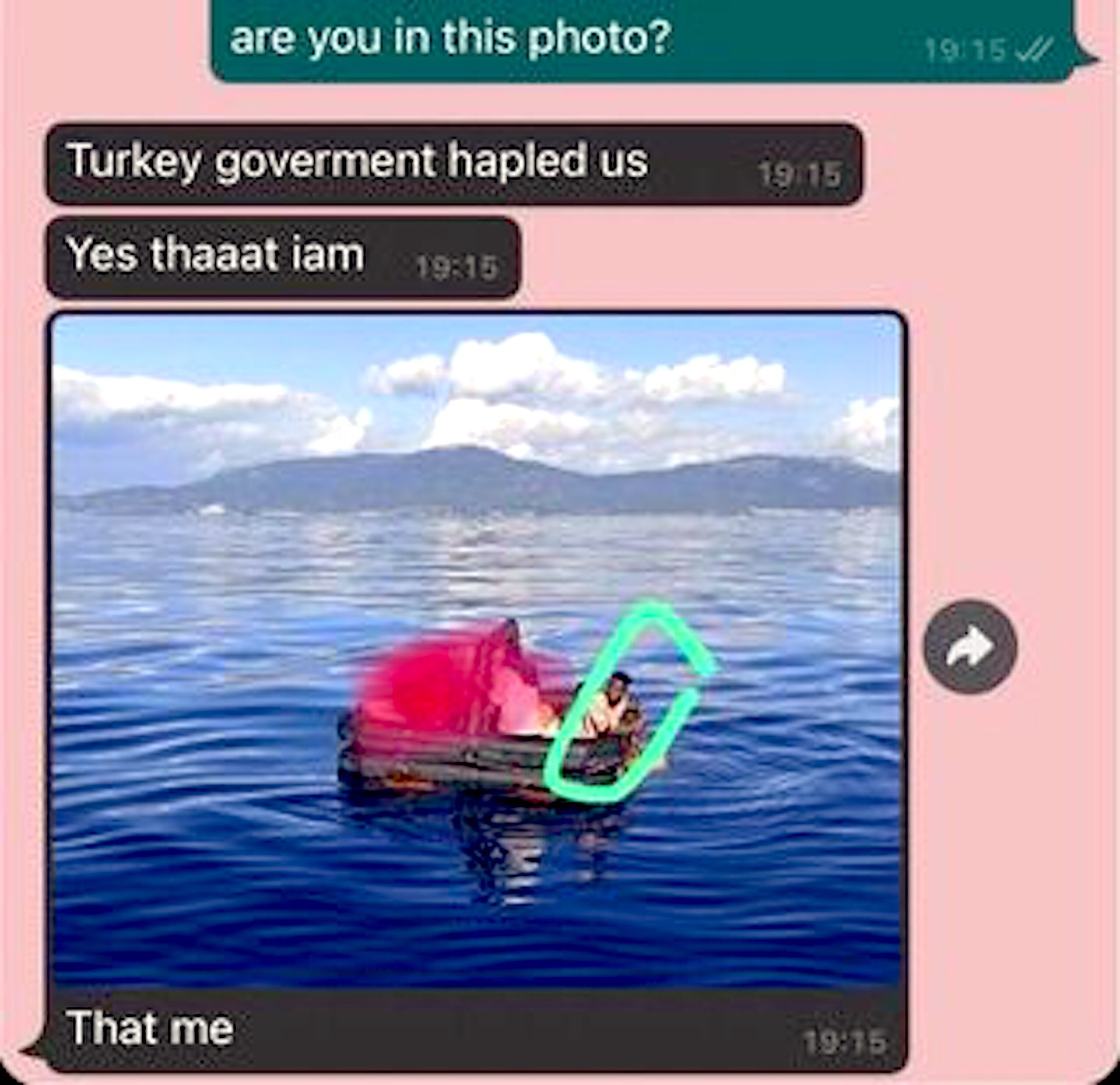 de turkse kustwacht heeft ze gevonden en kleding gegeven. met apple id kon hij gisteren weer contact met me opnemen en hij zit nu in de buurt van izmir. met niks.