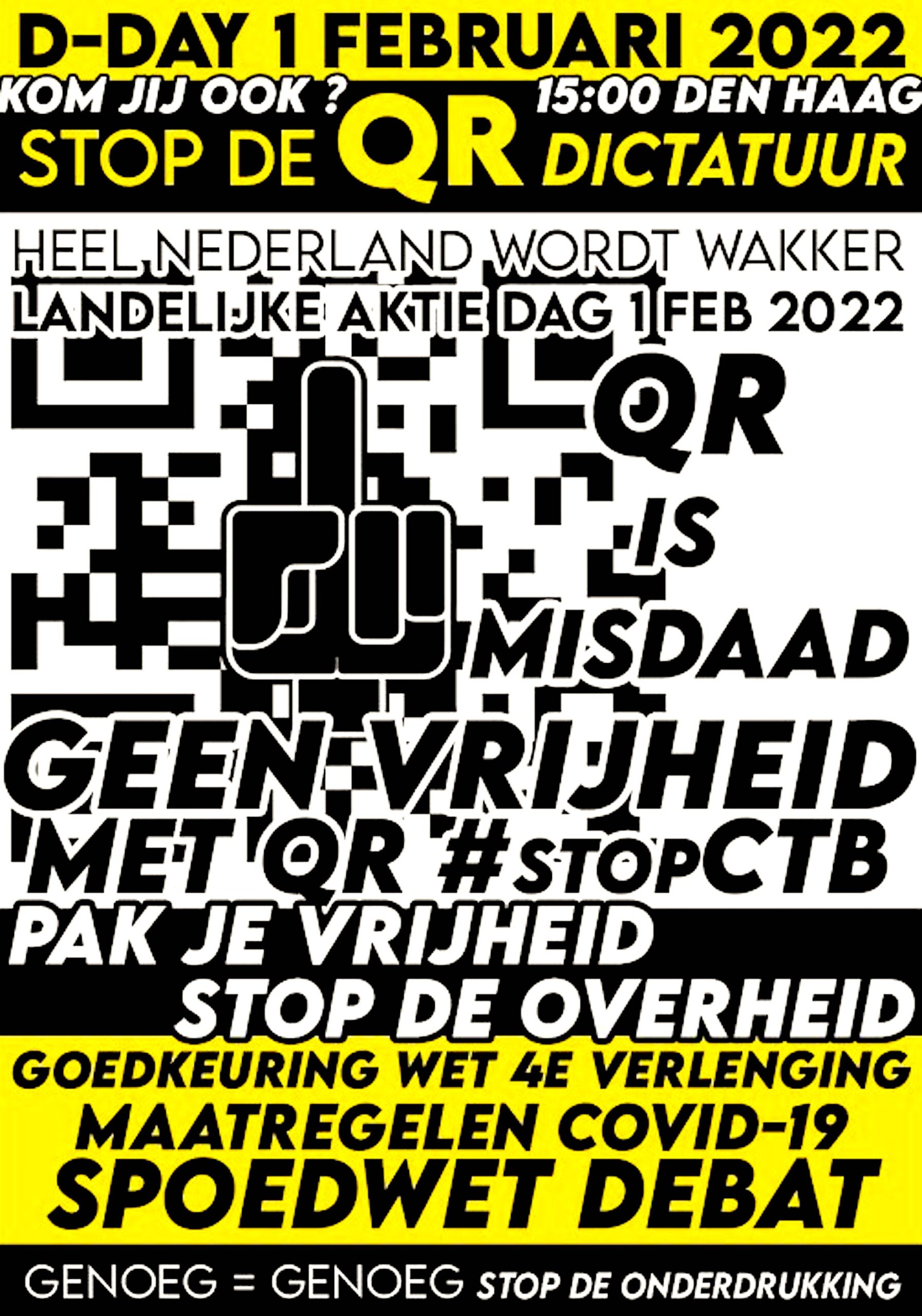 D Day, 15.00 Den Haag, Stop de QR Diktatur, 1. Februar 2022 (foto YouTube)