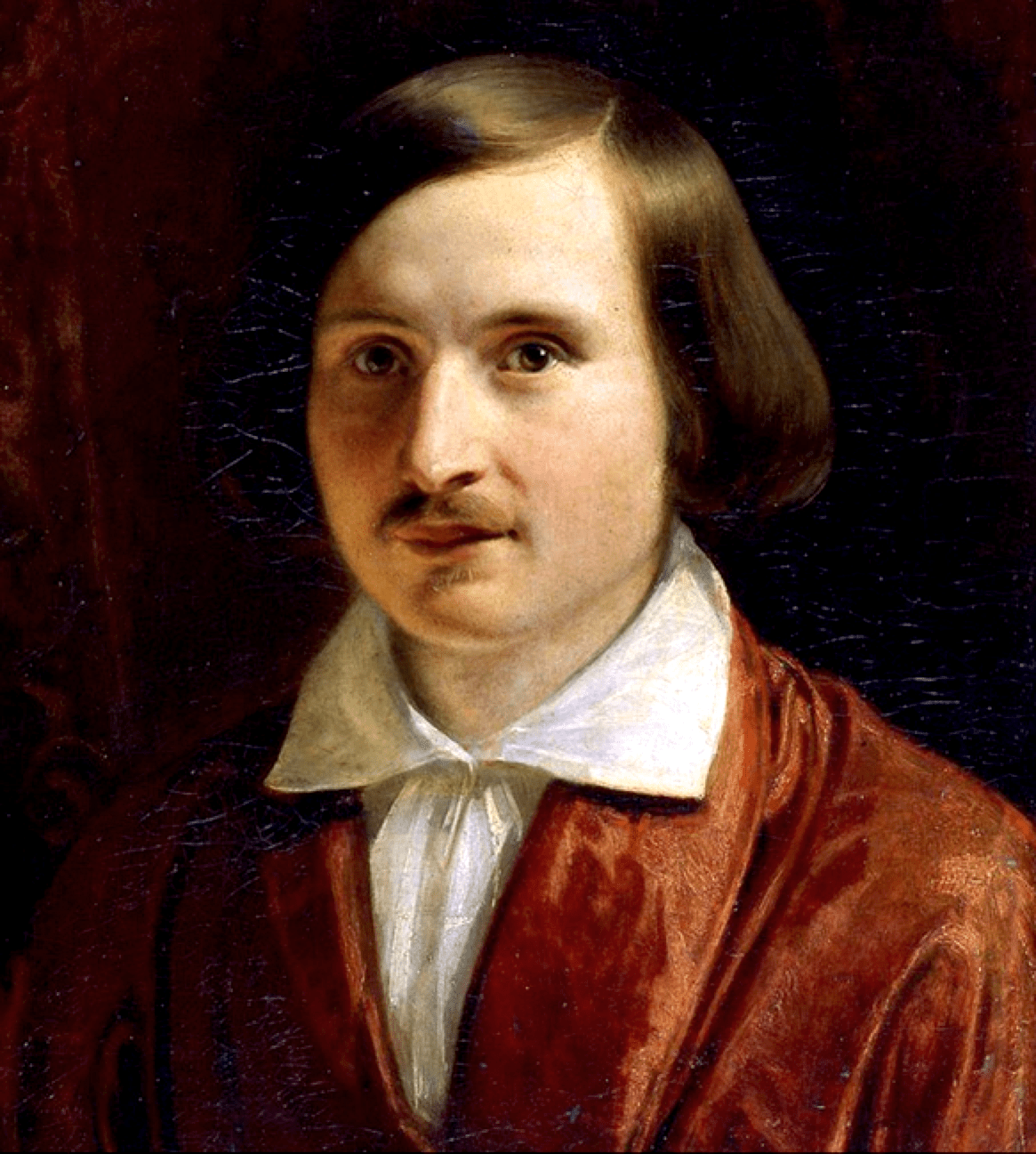 Kan men het leven van Nikolaj Gogol tragisch noemen? Jawel, dat is heel goed mogelijk. De uiteindelijk waanzinnig geworden schrijver werd geboren in het jaar onzes heren achttienhonderd en negen in de Oekraïne. Zijn vader, een grondbezitter, deed hem verscheidene kostscholen bezoeken, waar hij, zoals hij later beweerde, niets van ook maar de geringste waarde aan zijn kennis heeft toegevoegd. Naar men zegt waren bijvoorbeeld zijn Frans en Duits uiterst gebrekkig. Drie jaren na het overlijden van zijn vader vertrekt hij naar Petersburg om, naar hij stelt, een carrière als ambtenaar aan te vangen, maar in werkelijkheid wil Gogol niet meer of minder dan beroemd worden. Wonderlijk genoeg lukt hem dit binnen de spanne van slechts drie jaren tijds. Natuurlijk, het begin was moeilijk, zoals alle begin moeilijk is. Hij schrijft een lang gedicht, ‘Hans Küchelkarten’. De weinige recensies zijn desastreus. Naar alle waarschijnlijkheid kan worden aangenomen dat hier de eerste tekenen van zijn latere totale geestelijke ontwrichting opgeld doen. Totaal uit zijn evenwicht vlucht Gogol naar Duitsland, om na enige weken min of meer gelouterd terug te keren. Opnieuw zet hij zich aan het werk, en zie, zijn eerste bundel verschijnt in achttien een en dertig. Hij schrijft proza nu, verhalen over boze geesten, vampiers en folklore. De bundel wordt een groot succes. Hij maakt kennis met Poesjkin en alle coryfeeën van het literaire leven in Petersburg. In achttien twee en dertig volgt een tweede bundel met evenveel succes.