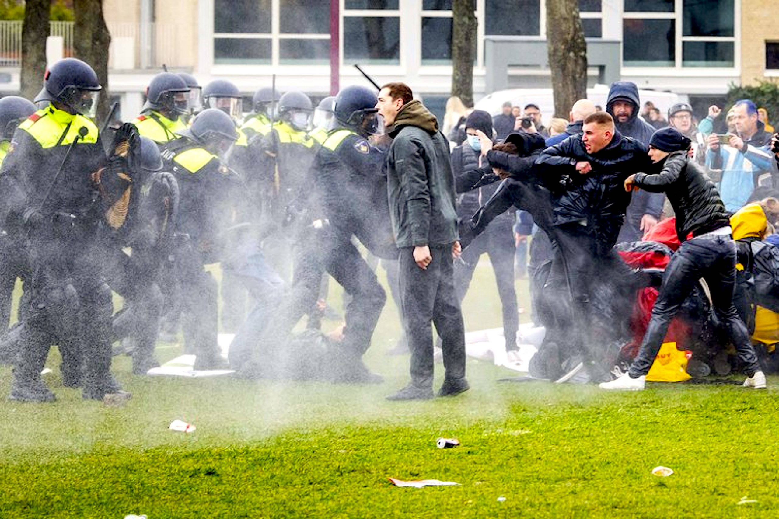 Later on, in some areas, young people of Turkish descent also came out on the streets and caused damage. Though both extreme Right parties – Geert Wilders’ Party for Freedom (PVV) and Thierry Baudet’s Forum for Democracy (FvD) – have been criticised for initially spurring the riots on, both later blamed the violence on Turkish youths and ‘mass immigration’, and Wilders even called for the Army to be brought in. Football Hooligans who had been rioting earlier then came out to ‘protect their cities’ from other rioters. In some cities, Police reportedly got these hooligans to help them (a claim that the Police later denied, despite a local mayor saying he was ‘proud’ of the fans’ support).