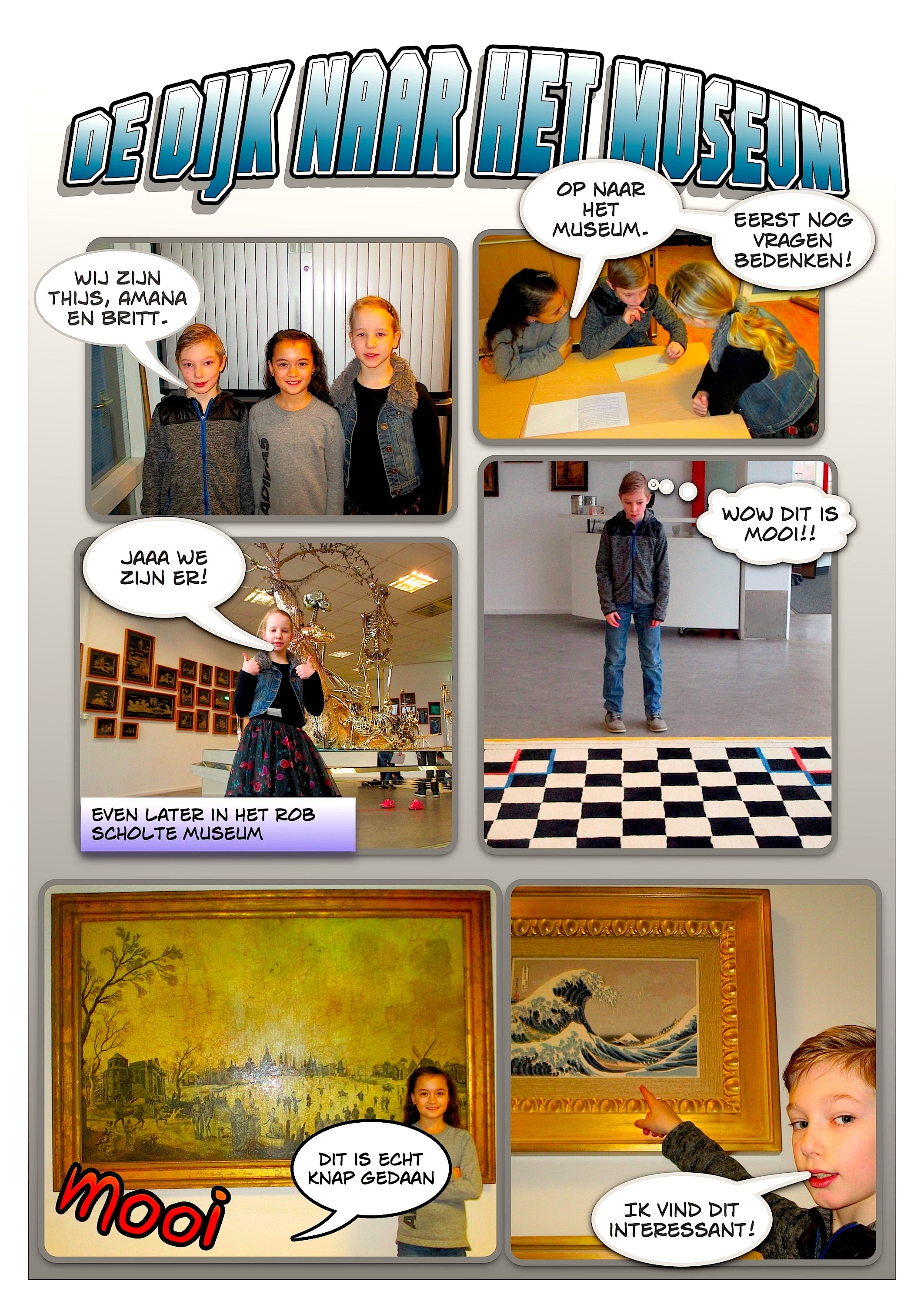 Beste kinderen van obs De Dijk, wij vonden het ook ‘super’ om al die enthousiaste blogs van jullie te lezen. En wij gaan snel jullie expositie in het Rob Scholte Museum bezoeken… we zijn erg benieuwd naar al de mooie kunst die jullie hebben gemaakt. Bedankt voor de leuke blogs erover.
