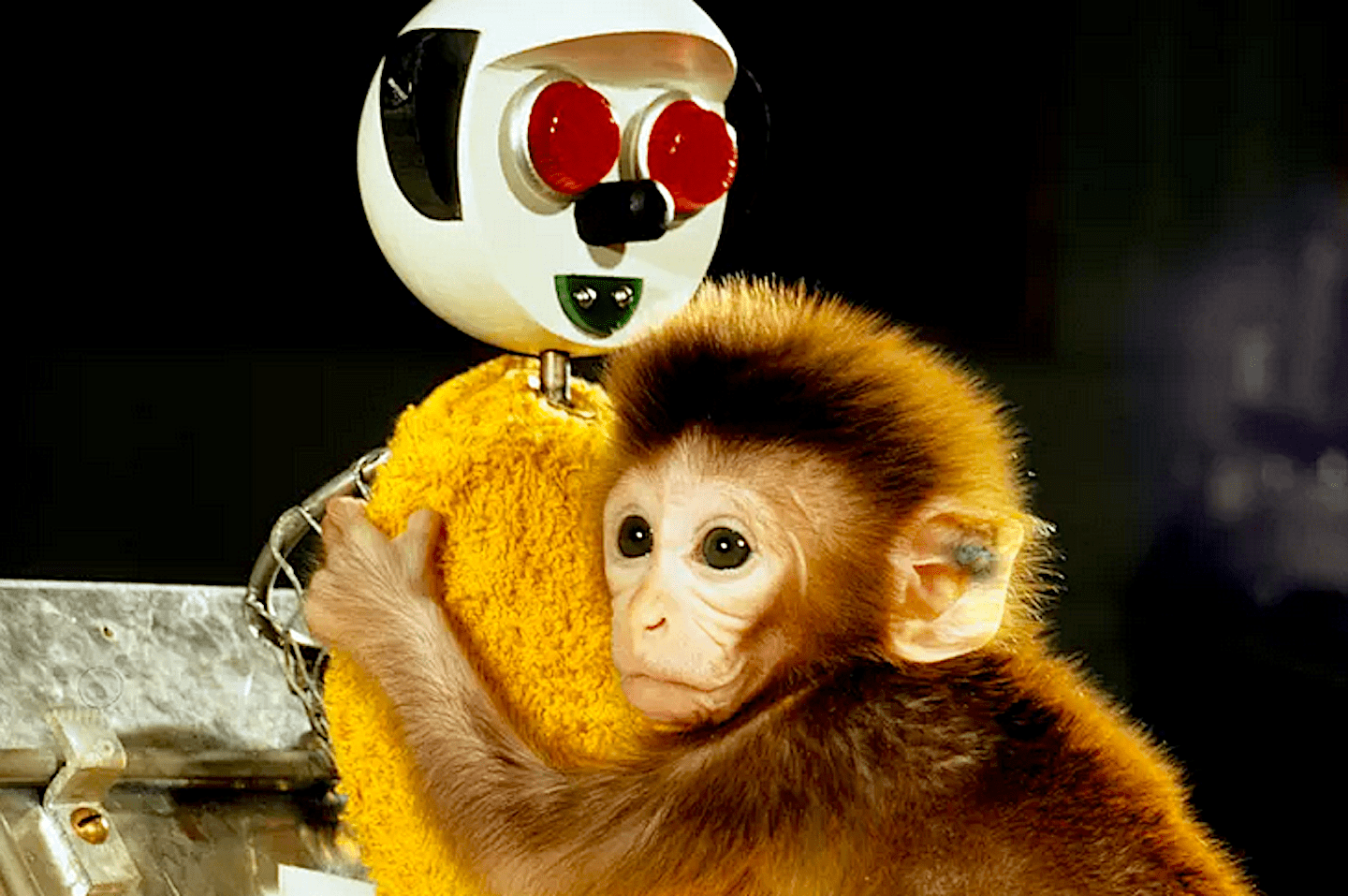(2) In het onderzoek van Harlow werden baby resusaapjes gescheiden van hun moeders. Ze kregen twee niet dierlijke moederalternatieven aangeboden: een apenmoeder van draad en hout en een apenmoeder omhuld in een katoenen doek. De babyaapjes kozen bijna allemaal voor de surrogaatmoeder in doek, zelfs toen de moeder van draad de enige was met een fles melk.