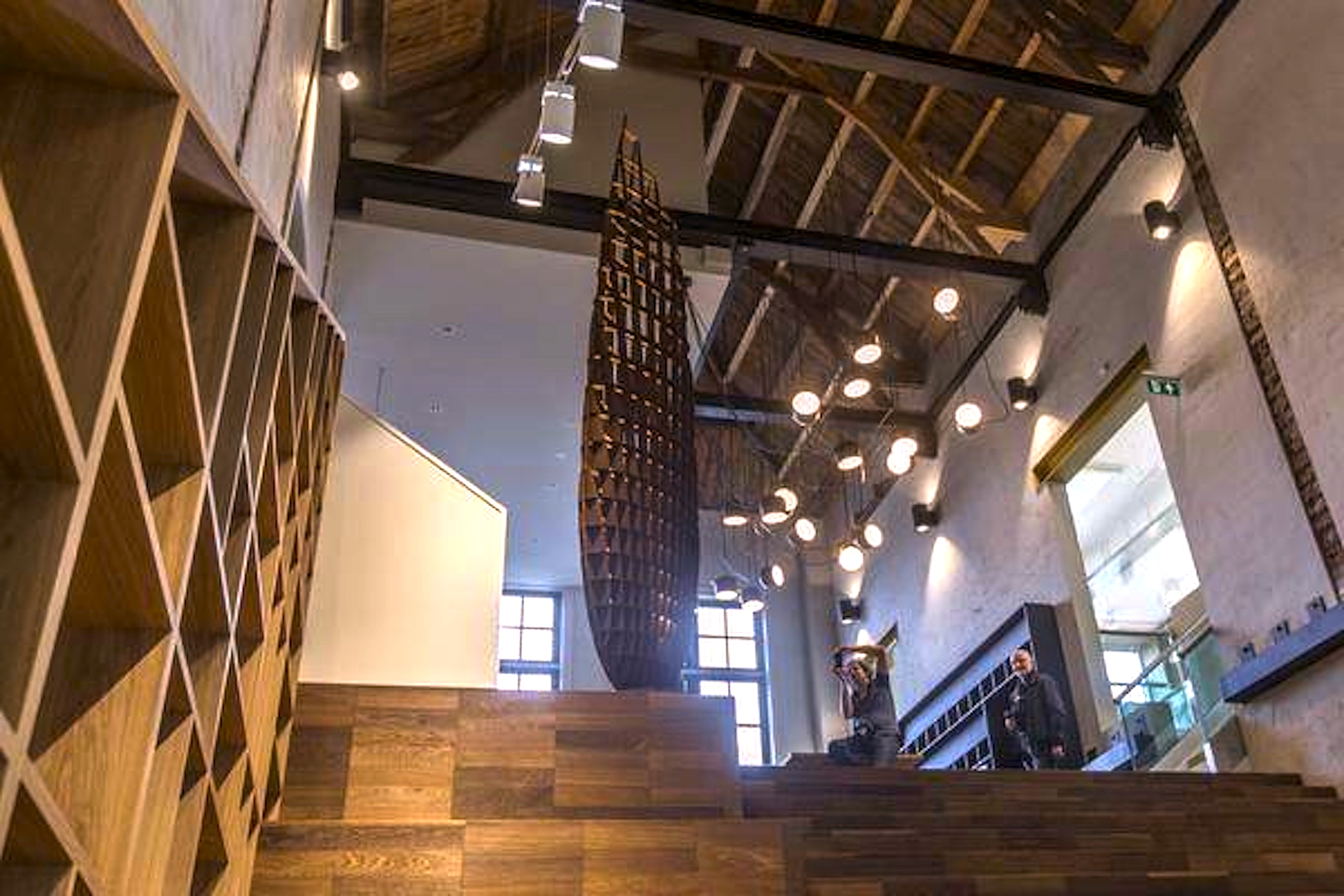Desondanks verliep de plaatsing van het sculptuur, een schaalmodel van een bestaand kunstwerk, snel en zonder problemen. Acht man tilden het gevaarte naar de eerste verdieping waar het een plek heeft gekregen bij de ingang naar het eet- en leescafé.