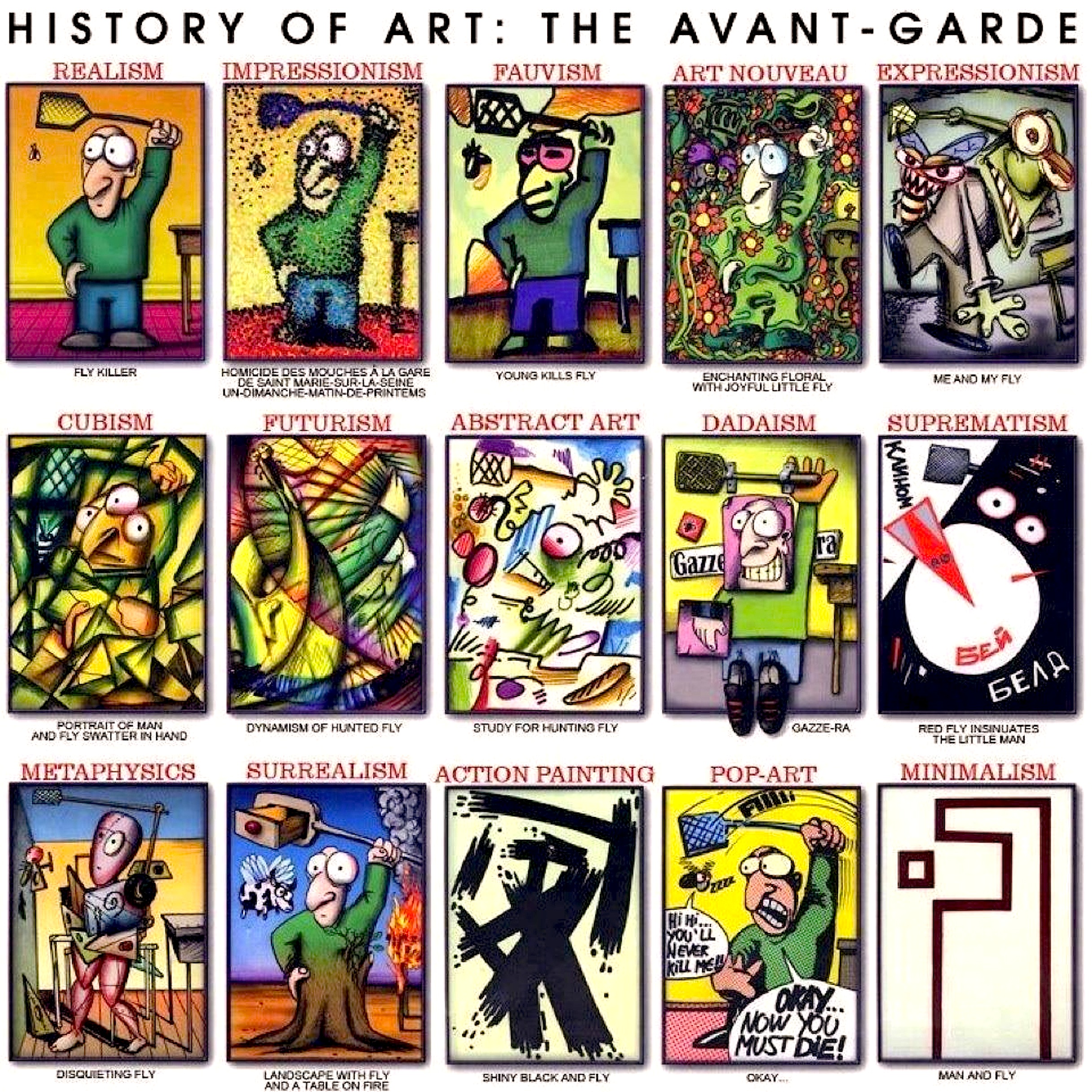 -Allegorieën, symbolen en primitivismen in autonoom kleurgebruik (Gauguin). Het Postimpressionisme wordt wel beschouwd als het fundament voor de moderne kunst. Cézanne is de voorloper van de abstractie, Seurat werkte in pointillisme en later luminisme, Van Gogh realiseerde al haast een vorm van expressionisme en Gauguin wordt deels gerekend tot de Symbolisten, die overigens niet één stijl realiseerden (denk o.a. aan Moreau), maar hij was wel de inspirator van de Nabis en had invloed op het Fauvisme en de Naïeve Kunst.