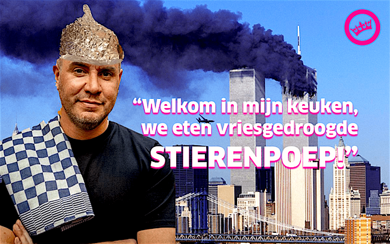 Ze hebben de torens niet zelf opgeblazen. Ze hebben bij Zembla alles nagerekend en gedebunked. De torens konden zeker wel instorten. Alleen was er wel kennis over dat er een aanslag zou komen. Een oud-topman van de CIA die bij Deutsche Bank ervoor zorgde dat voorafgaande aan de aanslagen short werd gegaan op herverzekeraars, is een voorbeeld. Dat preppen is hilarisch voor de kinderen later op verjaardagen.