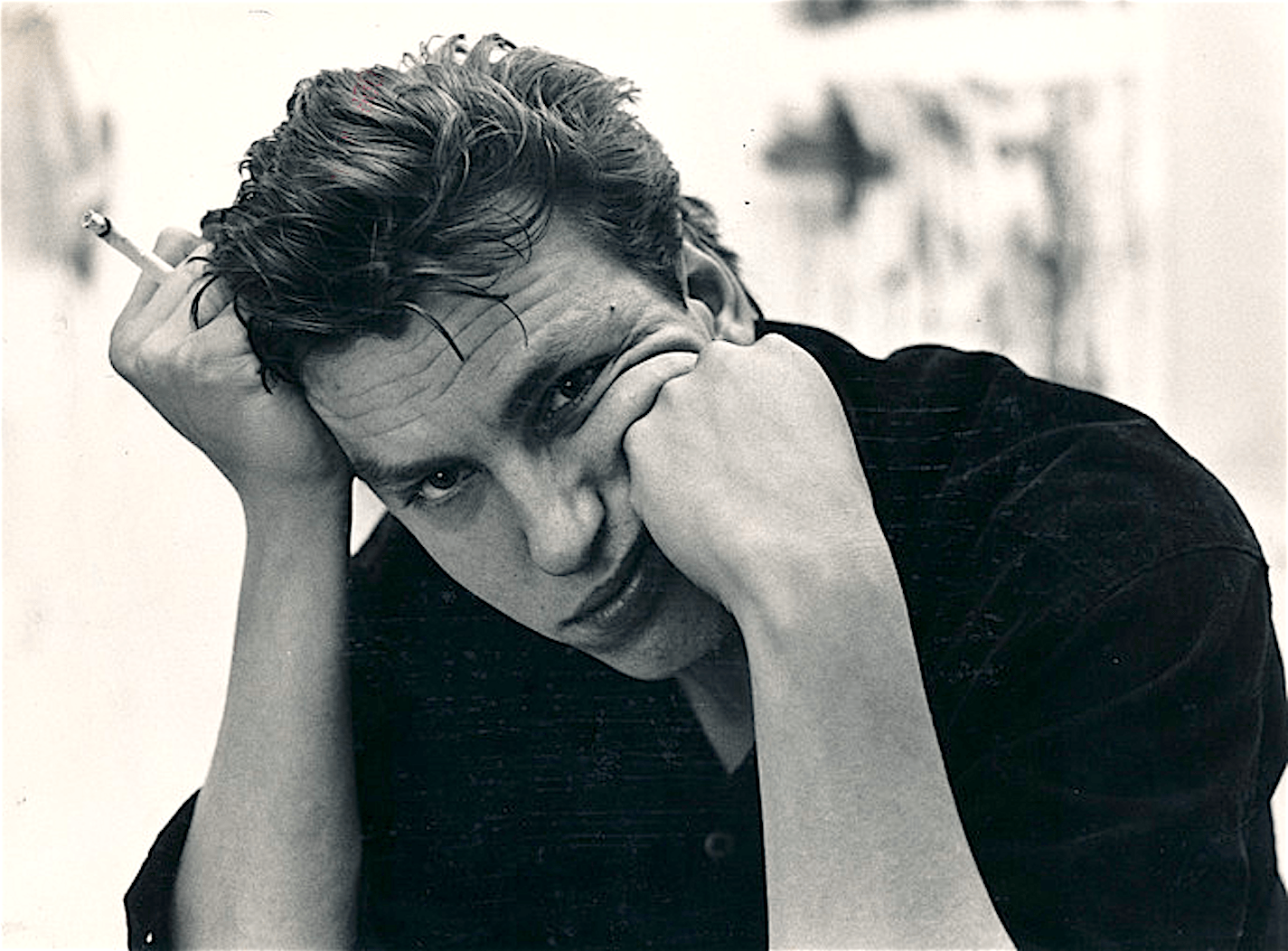 Toch hou ik in het begin van de avond even het hart vast. Een klein half uur te laat beent Rob Scholte gestressed zijn schitterende Brusselse behuizing binnen en moet zichtbaar tot het uiterste gaan om enige vriendelijkheid in zijn begroeting te leggen. Van files en de godganse dag van hot naar her hollen, knapt niemand echt op, laat staan van een wachtende journalist. “Ik ben een beetje manisch depressief,” licht hij later toe. “Uit het vallen van een theekopje voorspel ik de ondergang van de wereld, want bij mij kan door een kleinigheid alles voorgoed mis zijn, maar dat is ook zo weer over.” Terwijl zijn mooie vriendin Micky (22) en poezen Beer, Loeder en Brasje, de honneurs hartverwarmend waarnemen, steekt Scholte zich in het goeie goed en bij terugkomst is hij weer z’n eigen innemende zelf. Tomeloos rokend (“Ik ben een nicotinist”), driftig gesticulerend (“Ik ben een Italiaan”) en aanstekelijk schaterend. In no time kouten we er gedrieën als oude vrienden op los. Zieke poezen, bekende mensen, Scholtes CNN verslaving (“Ik haat universitaire blaaskaken, maar hou van mensen, die geïnformeerd zijn”), het leven in het algemeen, het onze in het bijzonder, de nieuwste boeken, films en platen, Cosmo (“Goed, geil blad”), ach, weinig blijft onbesproken. Maar de plicht roept, er dient immers gestapt te worden, waarbij Micky ons niet vergezelt, omdat ze ten tijde van dit treffen nog hoogzwanger is, dus verplaatsen Scholte en ik ons naar restaurant Océan, waar hij bij rosé, salade en geitenkaas gerold in zalm, zegt: “Ik ben knettergek van Mick. Ze is absurd sterk, echt een kanjer van een vrouw. Ze is de derde met wie ik samenwoon en ik denk dit maal weer, dat dit nooit meer overgaat, maar Micky en ik gaan er allebei van uit, dat eeuwig niet bestaat in de liefde, dus we zijn niet bang elkaar te verliezen en dat is een goede basis. Van de enige, ware Jacoba heb ik nooit gedroomd. Ik heb lange verhoudingen gehad, omdat het vrouwen waren, die me mateloos op wonden en fascineerden. Tot die fascinatie voorbij is. Ik hou van sterke, mooie vrouwen die en beetje wrijving veroorzaken. Daar groei ik van. Letterlijk. Anders krijg ik ‘m niet omhoog. Liefde is alles wat je zo noemt, zo is het met kunst ook. Iemand, die een korst brood voor jou laat vallen als je geen cent hebt, is een goed mens. Doet hij dat, wanneer je genoeg geld in je zak hebt om te dineren, is het een asociale zak. Liefde kan net zo van betekenis veranderen als al het andere. In de liefde eis ik veel, want ik ben niet alleen een volwassen man, ik kan ook jengelen als een klein jochie en om bij iemand volledig te kunnen zijn, moet er een wederzijdse basis acceptatie inzitten. Die herkende ik meteen in haar. Ik zag Micky, beleefde met haar diezelfde nacht de beste vrijpartij van mijn leven, en ze is nooit meer weggegaan. Inmiddels zijn we tweeënhalf jaar samen.