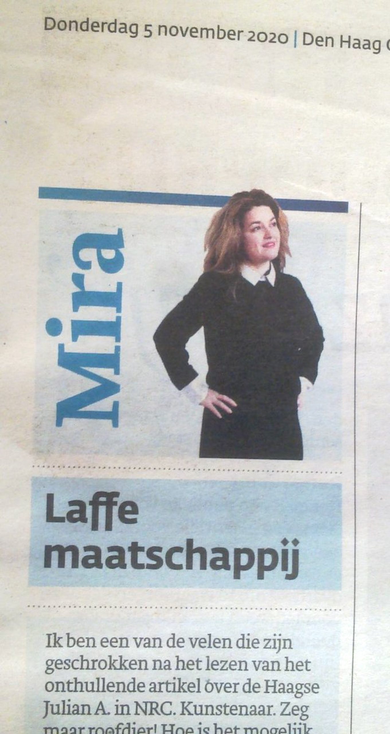 Ik ben een van de velen die zijn geschrokken na het lezen van het onthullende artikel over de Haagse Julian A in NRC. Kunstenaar. Zeg maar roofdier! Hoe is het mogelijk, dat iemand, die vrouwen anaal verkracht en drogeert, beurzen van 30.000 en 50.000 euro van het Mondriaan Fonds krijgt? Mannen, zoals Julian, bestaan, meer dan je denkt. Gaat de omgeving vrijuit? Is zijn school, de Koninklijke Academie van Beeldende Kunsten, die al jaren geleden klachten over zijn wangedrag kreeg en er niets mee deed, ook niet schuldig? Is de politie, die ermee volstond de ontelbare klachten te verzamelen en tegen een slachtoffer te zeggen, dat aangifte doen geen zin had, ook niet schuldig? En die leraren, zo onder de indruk van zijn talent? Zijn moeder, wier oogappeltje hij volgens NRC is? De galeriehouders, die, horend over de misdaden van de ‘kunstenaar’, reageerden met woorden als ‘ik ben zijn vader niet’? Zijn zij niet allemaal medeschuldig? Als het om vrouwen gaat, zijn we een laffe maatschappij. Lees het goed: hoe laf zijn al die mannen die ‘iets’ over het afschuwelijke gedrag van de ‘kunstenaar’ hadden gehoord en niets deden? Een maatschappij, waarin zoveel mannen met posities het gedrag van Julian A tolereerden?