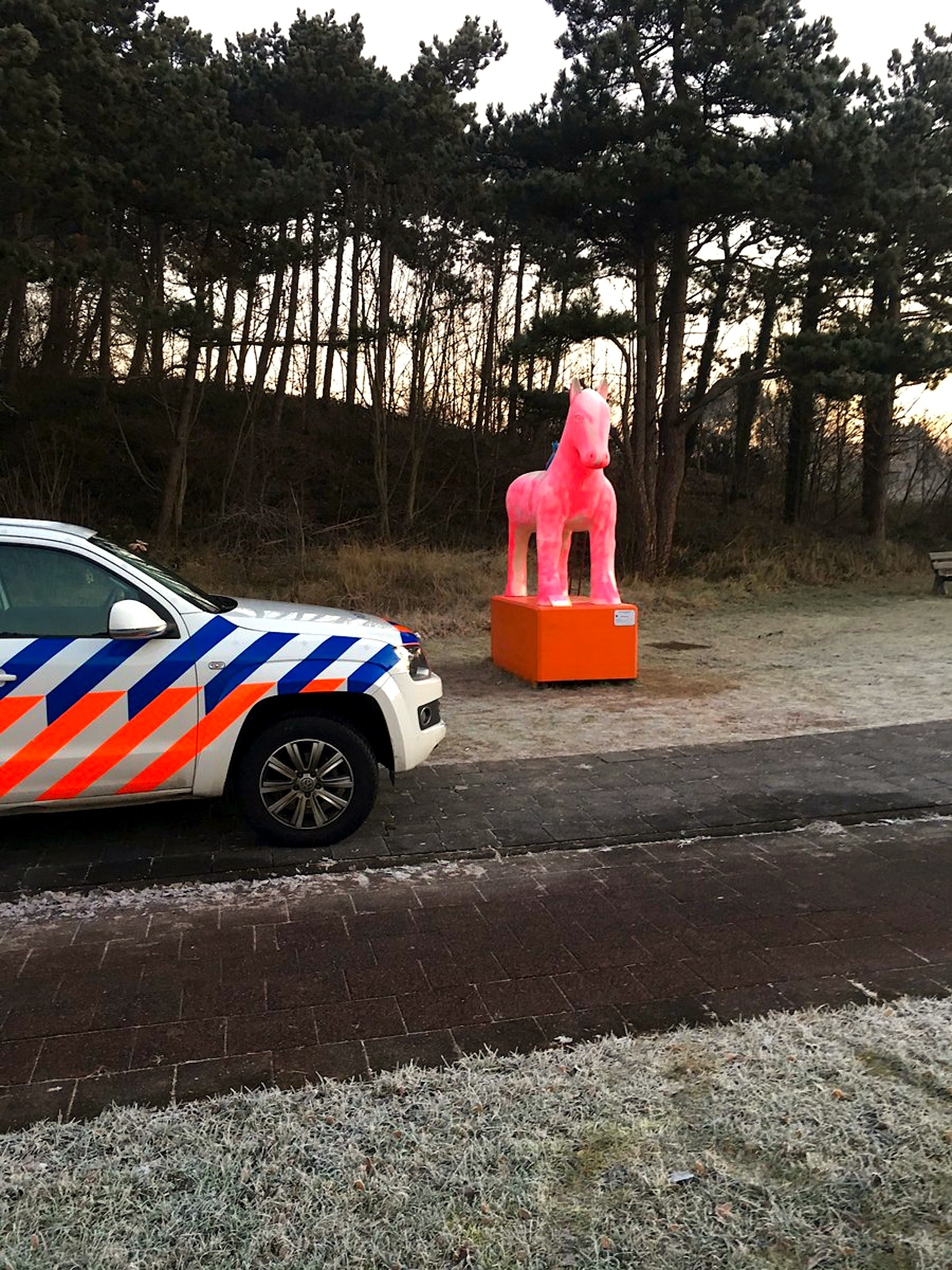 Man gaat roze kunstpaard te lijf met zaag in Egmond aan Zee
