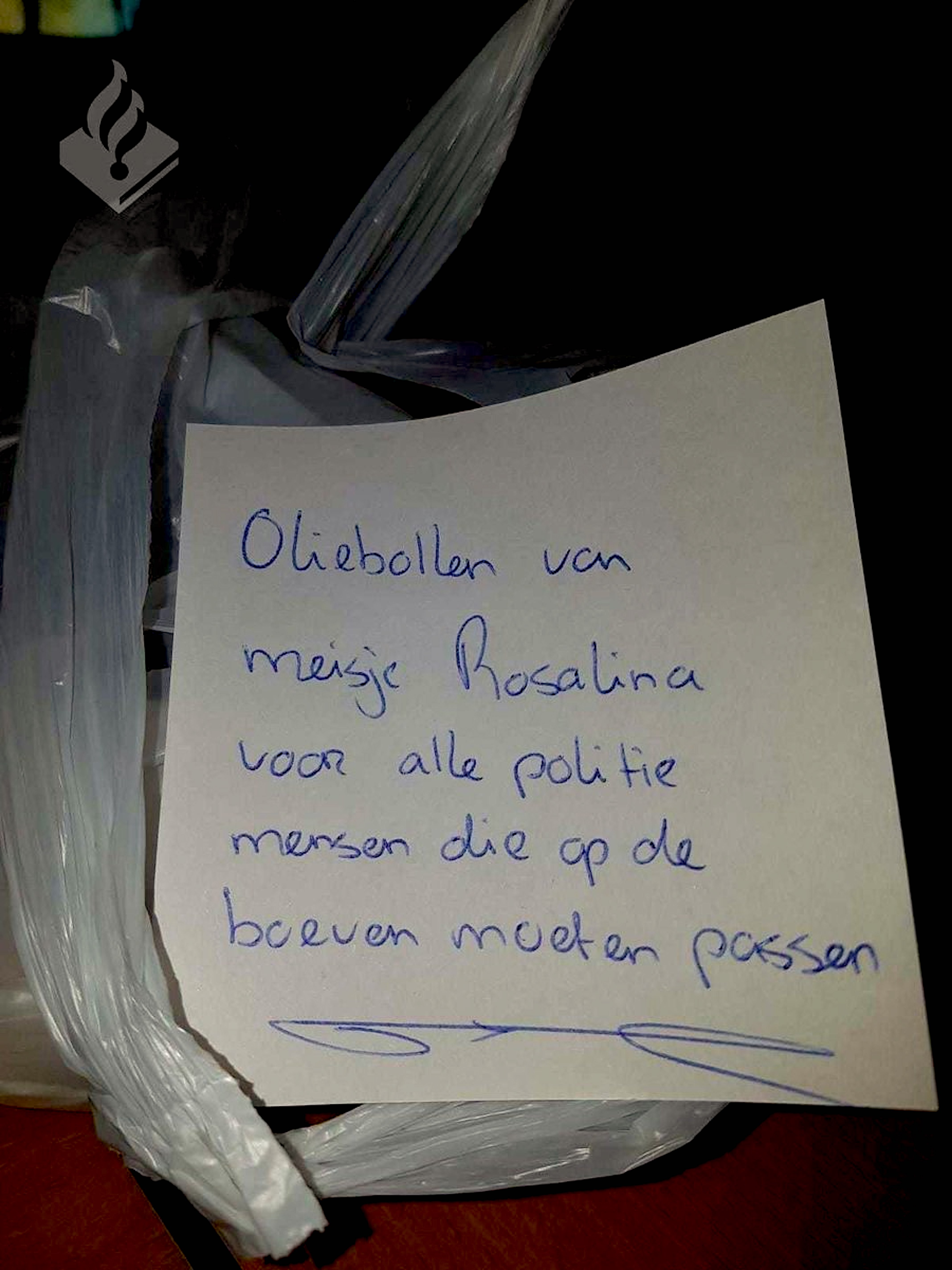 Den Helder – De zevenjarige Rosalina heeft op oudjaarsdag oliebollen gebracht naar het politiebureau in Den Helder. De lekkernij was bedoeld voor ’alle politiemensen, die op de boeven moeten passen’.