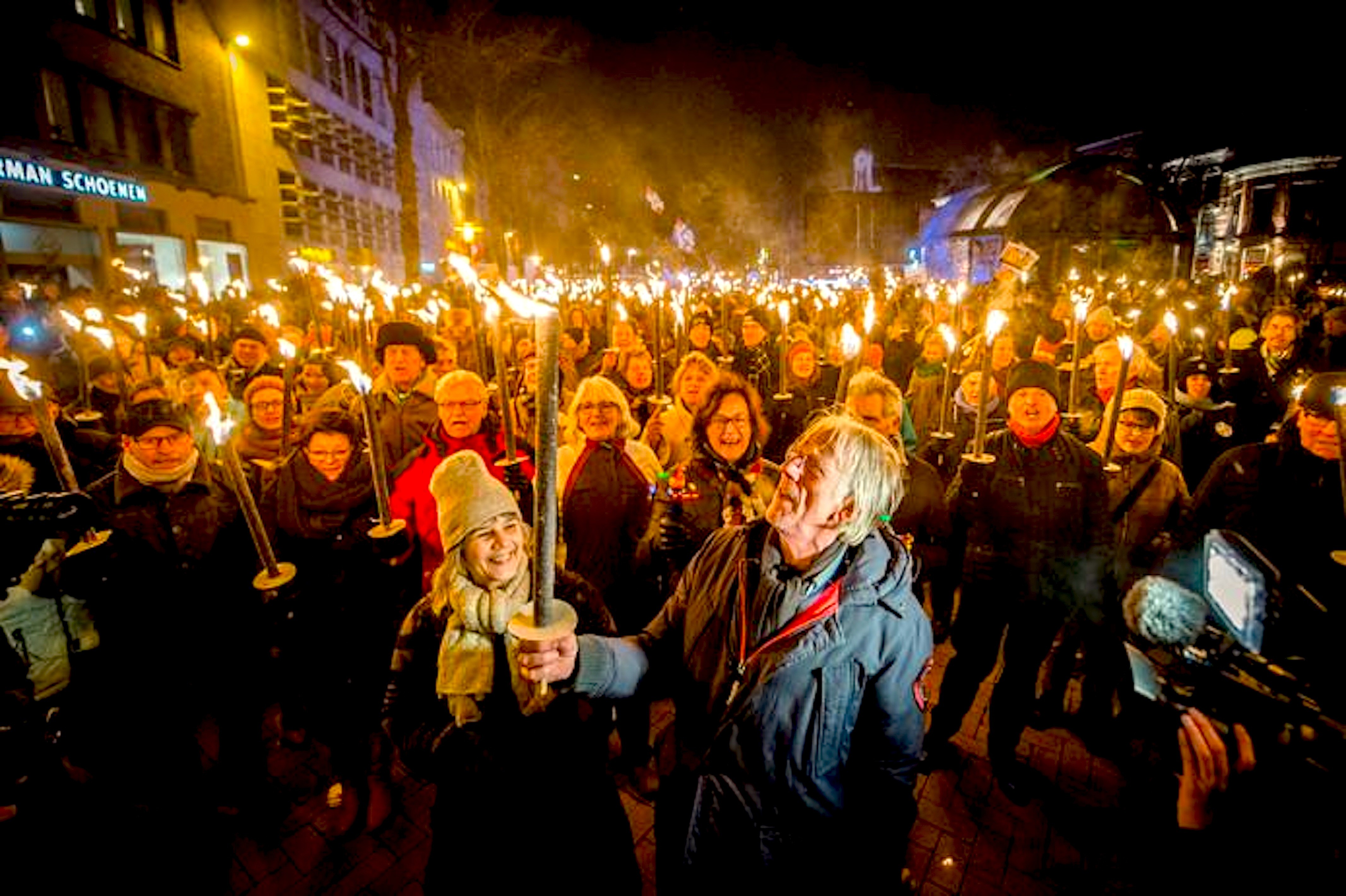 Burgemeesters worden beveiligd bij de fakkeltocht. Dat is toch ongelooflijk, dat het zó moet, omdat geen bestuurder het lef heeft om een daad te stellen?