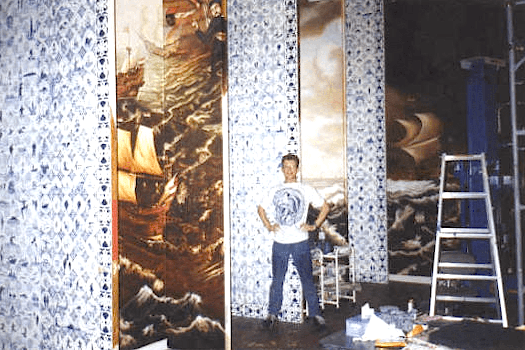 I personally brought Delft blue back to Asia in 1994, when I worked on Rob Scholte’s major project in Japan, Après nous le déluge. I painted the garden doors of the replica of the Huis ten Bosch palace in Nagasaki.