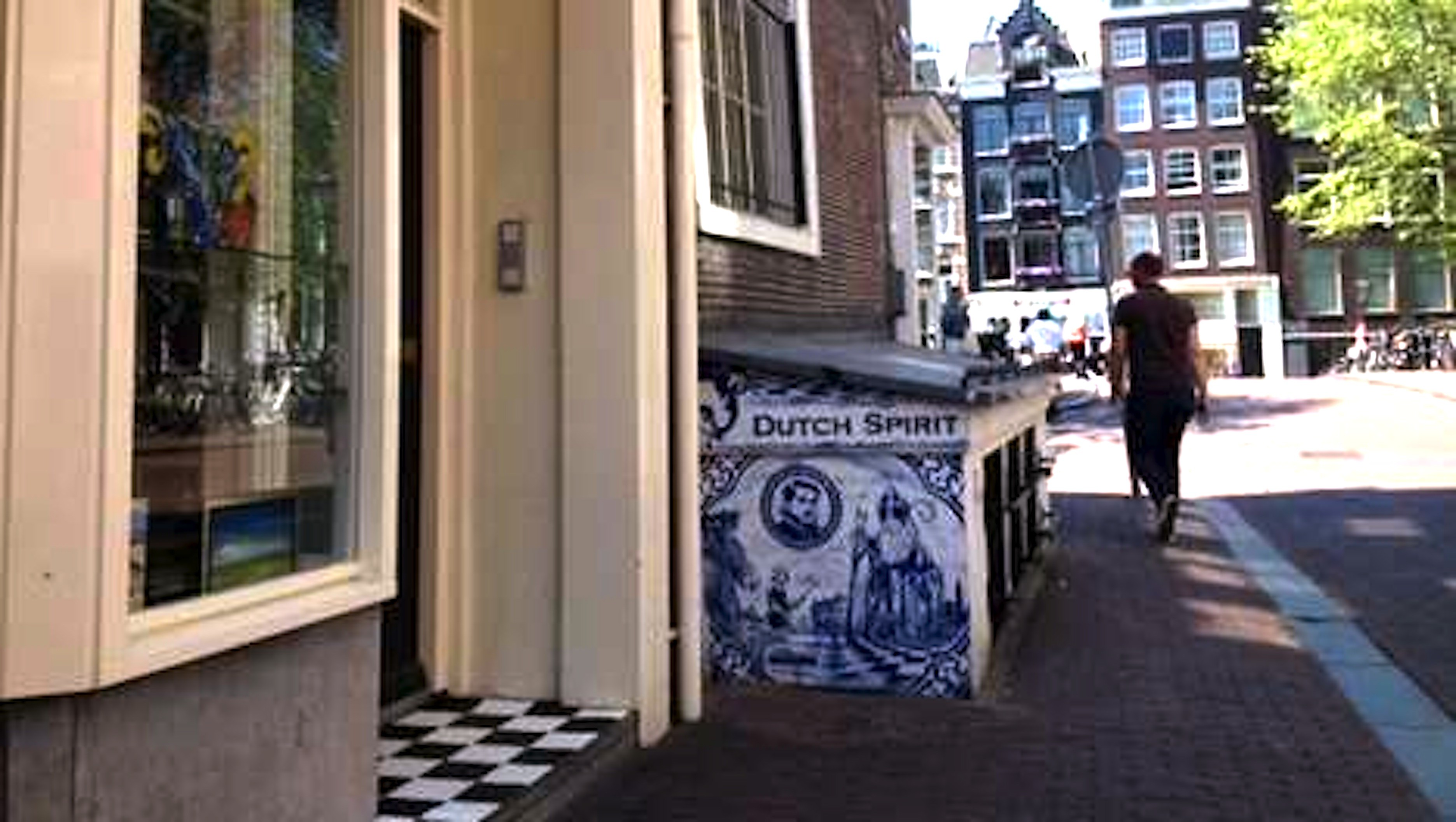 Volgens sommigen zou de reden van verwijdering zijn dat het om een monument gaat, maar zelfs dan nog: het betreft een piece op de zijkant van een uitbouw op de stoep, die bepaald niet het monumentale aanzicht van het pand ontsiert. Sterker nog: het muurtje heeft een pleisterlaag, waar regelmatig tags op werden gezet en die steeds weggeschilderd moesten worden, dus het feest begint weer opnieuw. En er zou een (lees: http://www.oscarvangelderen.nl/post/The-Real-Dutch-Spirit–removing-art-from-the-streets-N12.html) klacht zijn binnengekomen, bij de stadsdeelraad, onduidelijk is van wie. Edoch, the plot thickens. In het pand woont de vermaarde bariton David Wilson-Johnson, en die is zeker niet degene die de klacht heeft ingediend, integendeel. Op de interwebs schreef hij de volgende, tamelijk vernietigende reactie: “This was on MY house and no-one asked me to remove it… I am mortified that the Amsterdam authorities didn’t have the common sense or civility to even contact me before they destroyed this work of art yesterday. I have been living here in this monumentpand for 15 years and life has been a constant battle with peeing and pooping dogs and their owners, the annual Queen’s Day and King’s Day streams of drunks, piss and filth, dangerously parked bicycles and attacks from ugly and brainless graffiti. I have tried everything. I planted bushes, trees… and even hundreds of tulips, all to no avail. Hugo’s artwork was the ONLY thing which staunched the flow of brainless effluent into the walls of my 400 year old house. Passers by respected it, no longer took it for a public urinal. Hugo’s work was thought-provoking, ironic, witty , topical and a little subversive maybe. It proved to be a huge success with the hundreds of tourists who now overrun the Nine Streets. It depicted the very acts of stupidity and heavy-handedness which the Amsterdam City Hall has now compounded: “so much for Dutch Spirit”… the philistines are taking over in this once famous haven for the arts.” Daar zit geen woord Chinees bij, lijkt me zo. En even voor de duidelijkheid: Kaagman bracht het werk al in november 2014 aan, toen Dutch Accent nog De glaswerkplaats heette, dus hoe dit als reclame voor de winkel gezien kan worden, is mij een raadsel. Recent, ongeveer twee maanden geleden, toen het werk dus al bijna een half jaar te zien was, veranderde eigenaar Ton Verdegaal de naam in Dutch Accent, een referentie wellicht naar het werk, en ja, in zijn winkel (waar vooral toeristen bediend worden, we hebben het hier immers over de 9 straatjes) worden ook wat kleine werken van Kaagman verkocht. Het lijkt me van de zotte om Kaagmans’s werk, dat altijd een humoristisch (soms cynisch) commentaar geeft op de actualiteit en de geschiedenis van Nederland als ‘reclame’ te bestempelen. Alleen al het feit dat Kaagman het oer-Hollandse Delfts blauw gebruikt om zijn mild-subversieve boodschap uit te dragen maakt dat het werk meer dan op zijn plaats is op een plek die als oer-Amsterdams gezien kan worden. Inmiddels heeft Kaagman het werk overgeschilderd, want hij noch Verdegaal hadden veel trek in een boete van 2500 euro. Binnenkort zal Dutch Spirit echter verrijzen, kan ik u verklappen, al was het maar om de totale vertrutting van Amsterdam tegen te gaan. Leve De Schoonheid van Amsterdam!