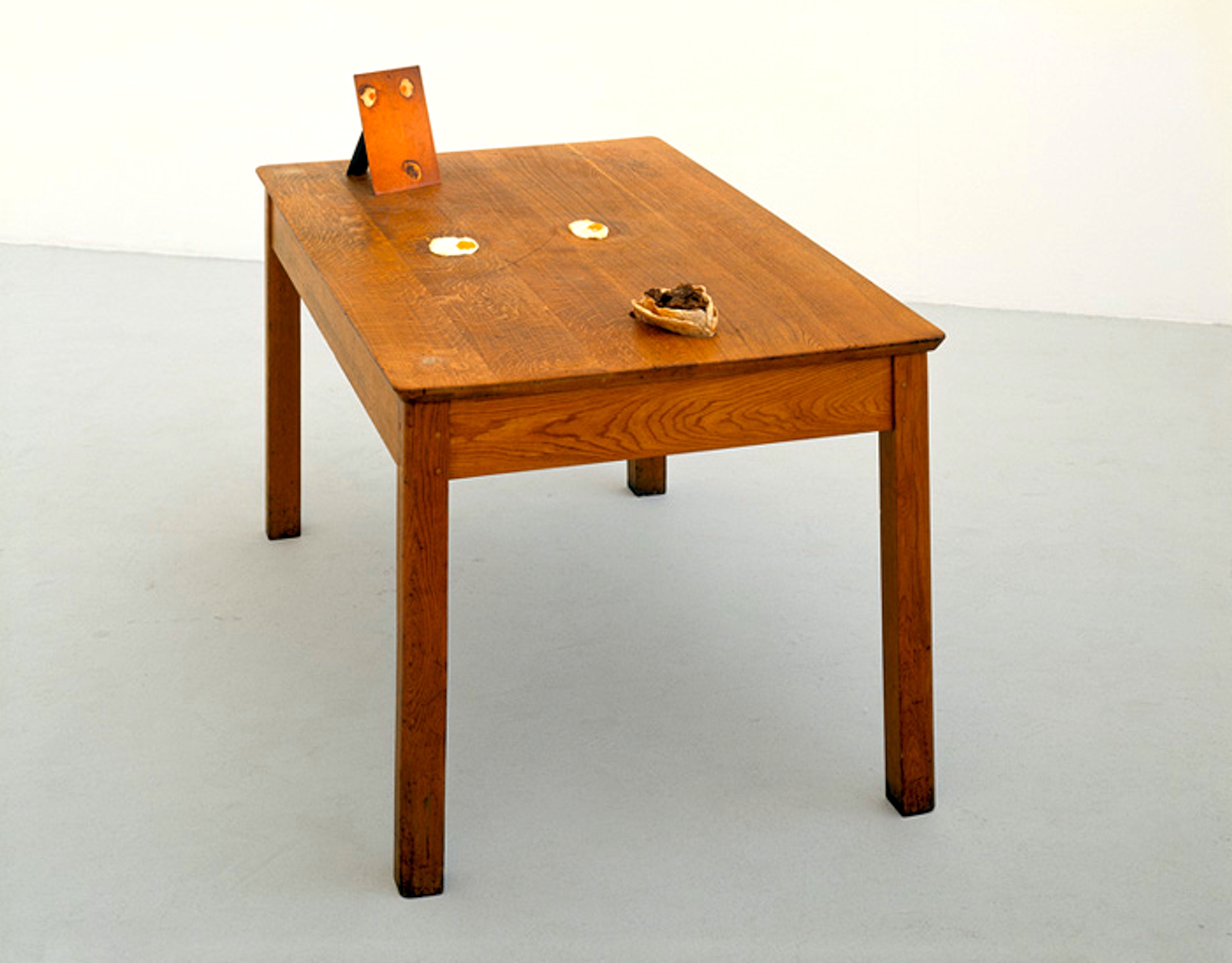 Maar er schuilt natuurlijk meer achter Lucas’ artistieke inspanningen. Two Fried Eggs and a Kebab oogt zo doelbewust simpel en stom en getuigt zo overduidelijk van ‘schokkend’ slechte smaak dat zelfs kunstcritici snappen dat er sprake moet zijn van een dubbelzinnige grap.