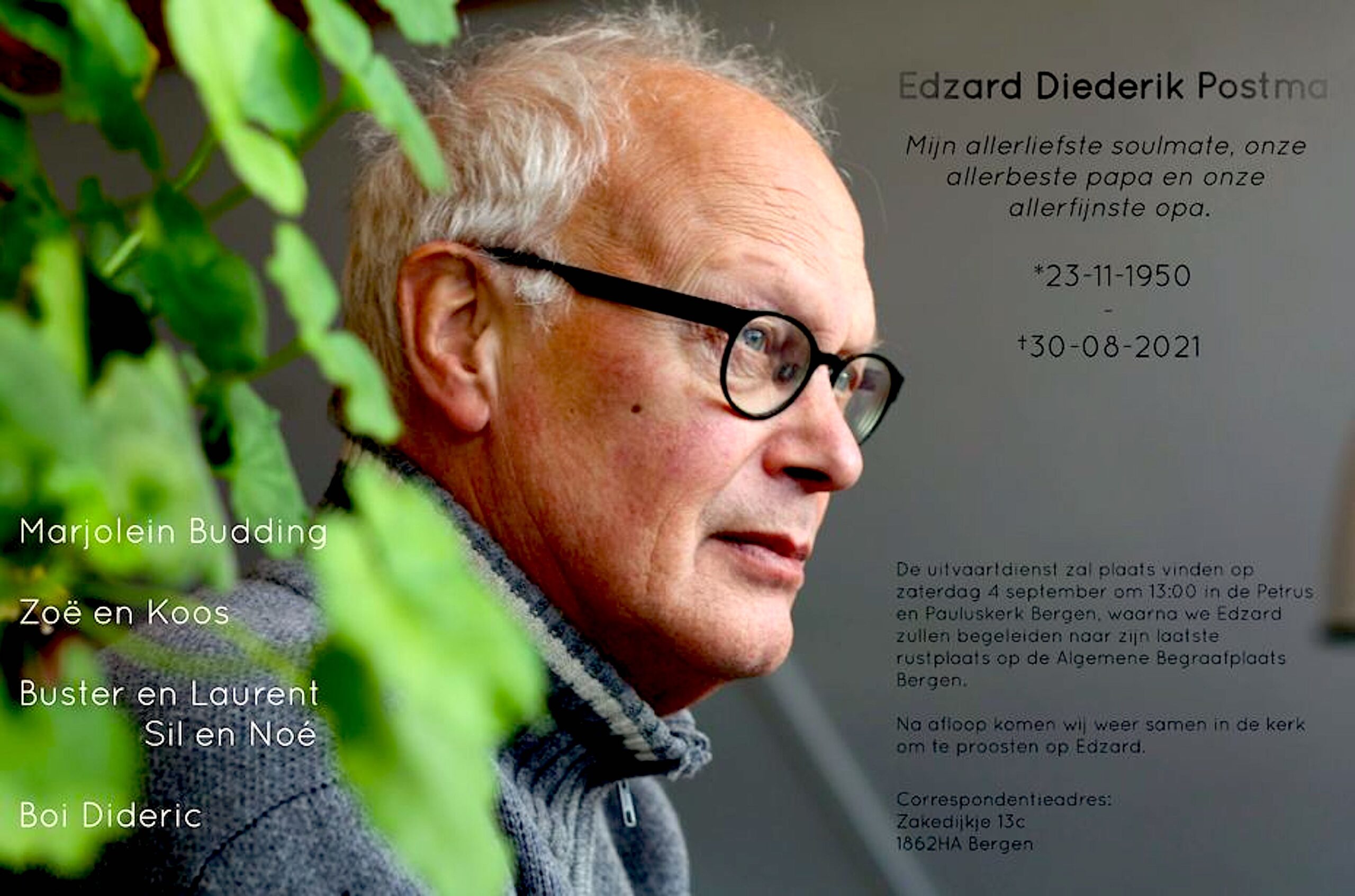 R – Edzard Dideric Overleden, Rust Zacht, Lieve Vriend!