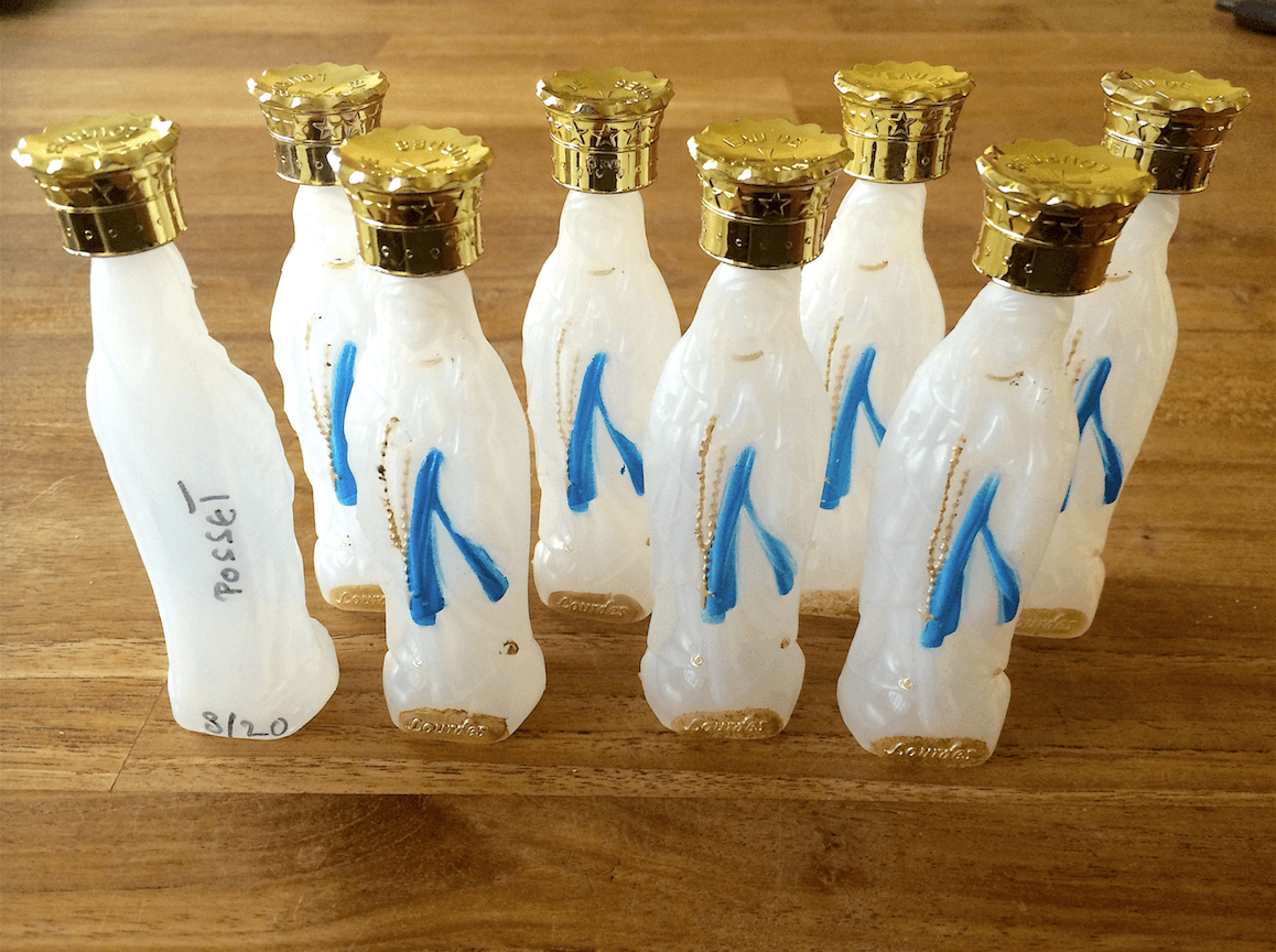 In Lourdes vulde ik originele plastic Maria beeldjes met water en straalde ze vervolgens in.