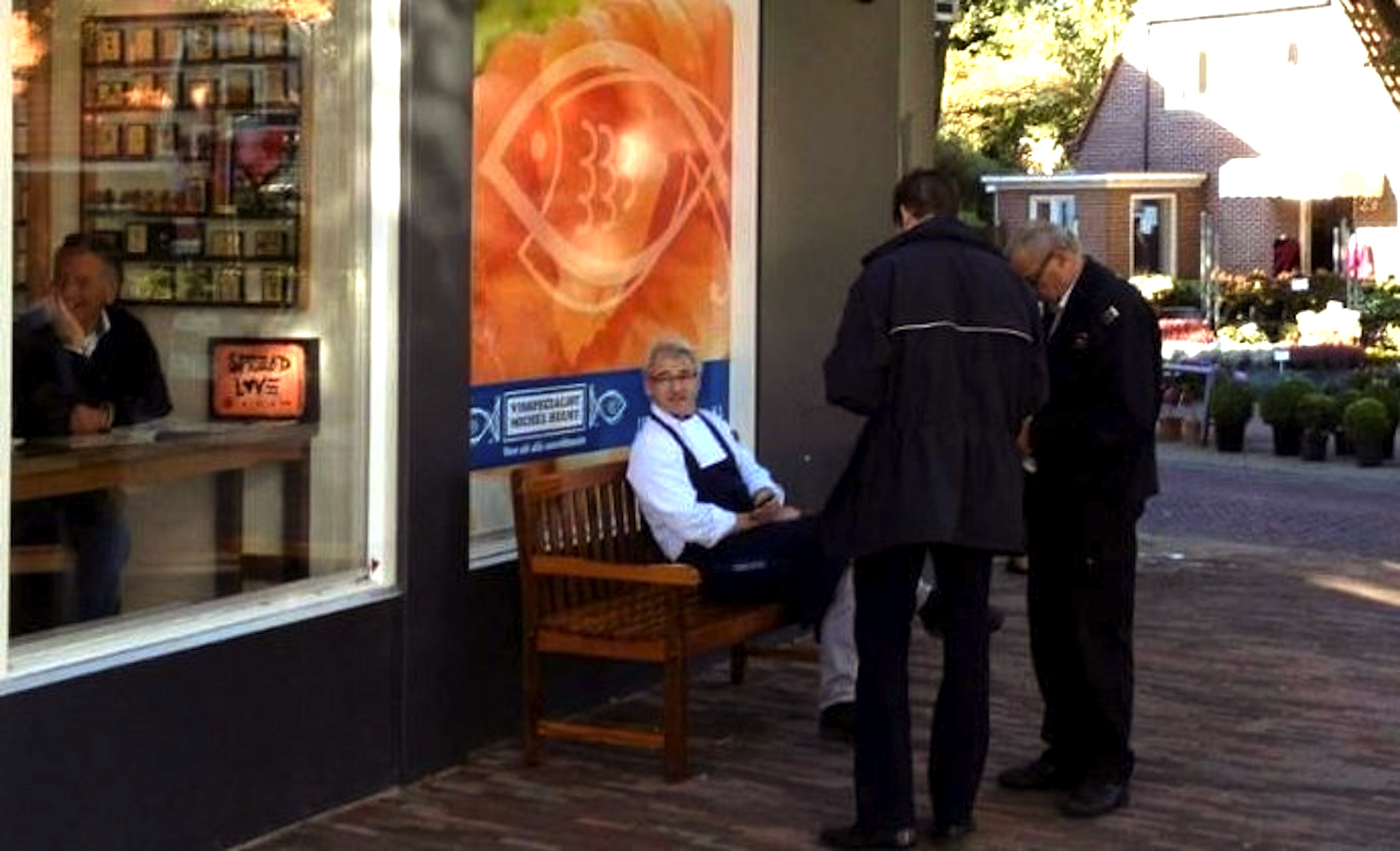 BERGEN – Uit protest vanwege een bekeuring voor een zitbankje voor zijn viswinkel, roept de gedupeerde winkelier op om met zelf meegebrachte bankjes zijn straat te komen bevolken.
