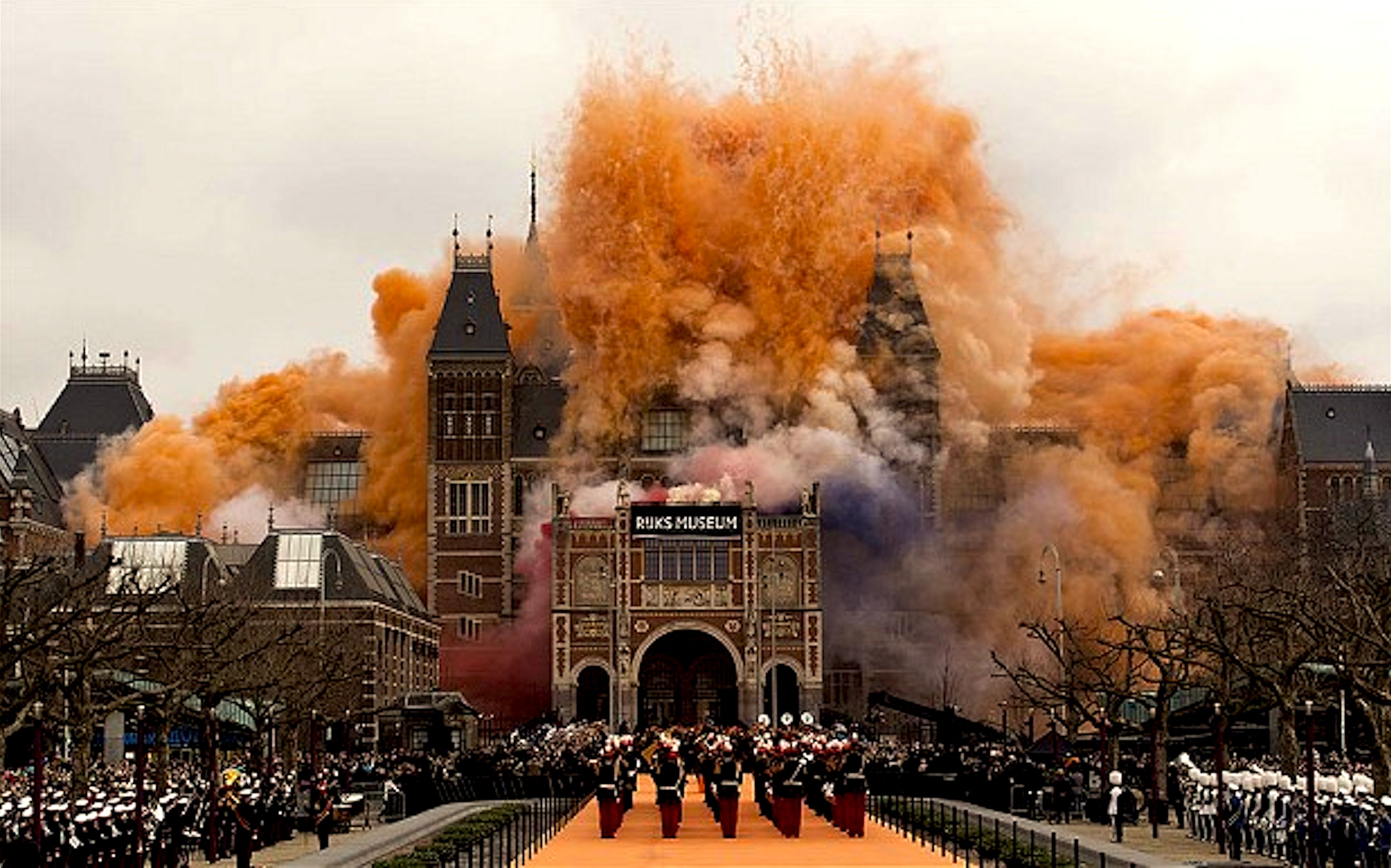 De man werd vervolgens door de medewerkers van het Rijksmuseum verzocht het museum te verlaten. De man stemde hiermee in en liet zich welwillend naar de uitgang begeleiden. Daar aangekomen verzette de man zich plotseling waarop de museummedewerkers hem dwingend de deur uit zetten. De man begon daarop aandacht te trekken van de omstanders door te schreeuwen en zich te laten vallen.