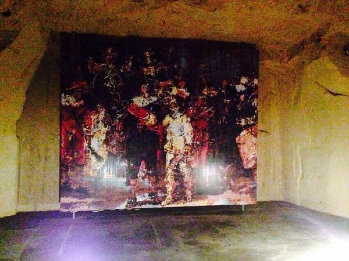 Kunstenaar Rob Scholte stelt werk tentoon diep in de mergelgrotten van de Cannerberg. Als symbolische bescherming tegen de stille oorlog boven de grond.