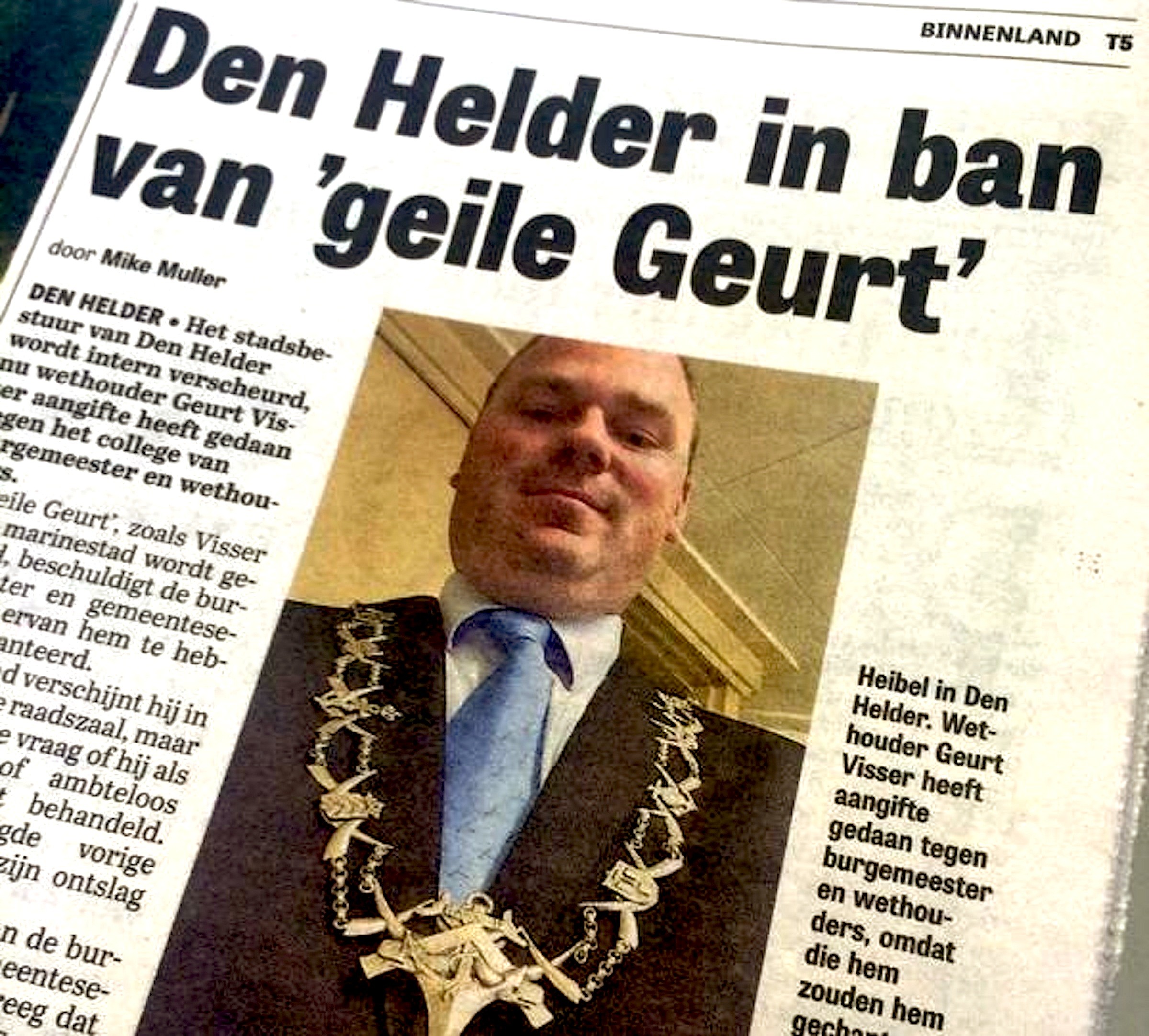 Den Helder in de ban van ‘Geile Geurt‘, zo als De Telegraaf hem op de Voor Pagina etaleert (foto Twitter)