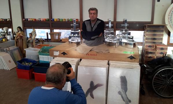 Met fotograaf Peter van Aalst bij kunstenaar Rob Scholte voor interview in oudjaarsbijlage