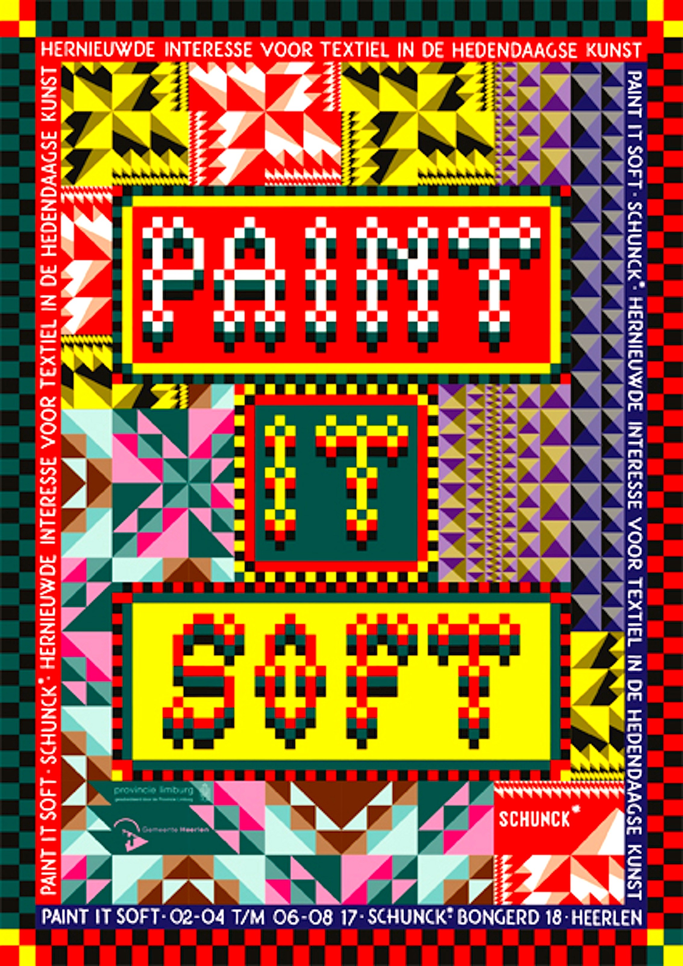 PAINT IT SOFT is een omvangrijke tentoonstelling over de ‘renaissance’ van de textielkunst. Zoals textielkunstenaars in de jaren ’50 vanuit de grenzen van het canvas uitkwamen bij textiel, zo rekken vele hedendaagse kunstenaars de schilderkunst letterlijk op tot ‘sociale weefsels’ en ‘olieverfschilderijen van stof’. PAINT IT SOFT ontrafelt de huidige herontdekking van de textielkunst aan de hand van de collectie SCHUNCK* en recente ontwikkelingen in de hedendaagse kunst. De tentoonstelling borduurt voort op het artistieke onderzoek en presentatiebeleid van SCHUNCK* rondom avant-gardistische tendensen vanaf de jaren ’50.