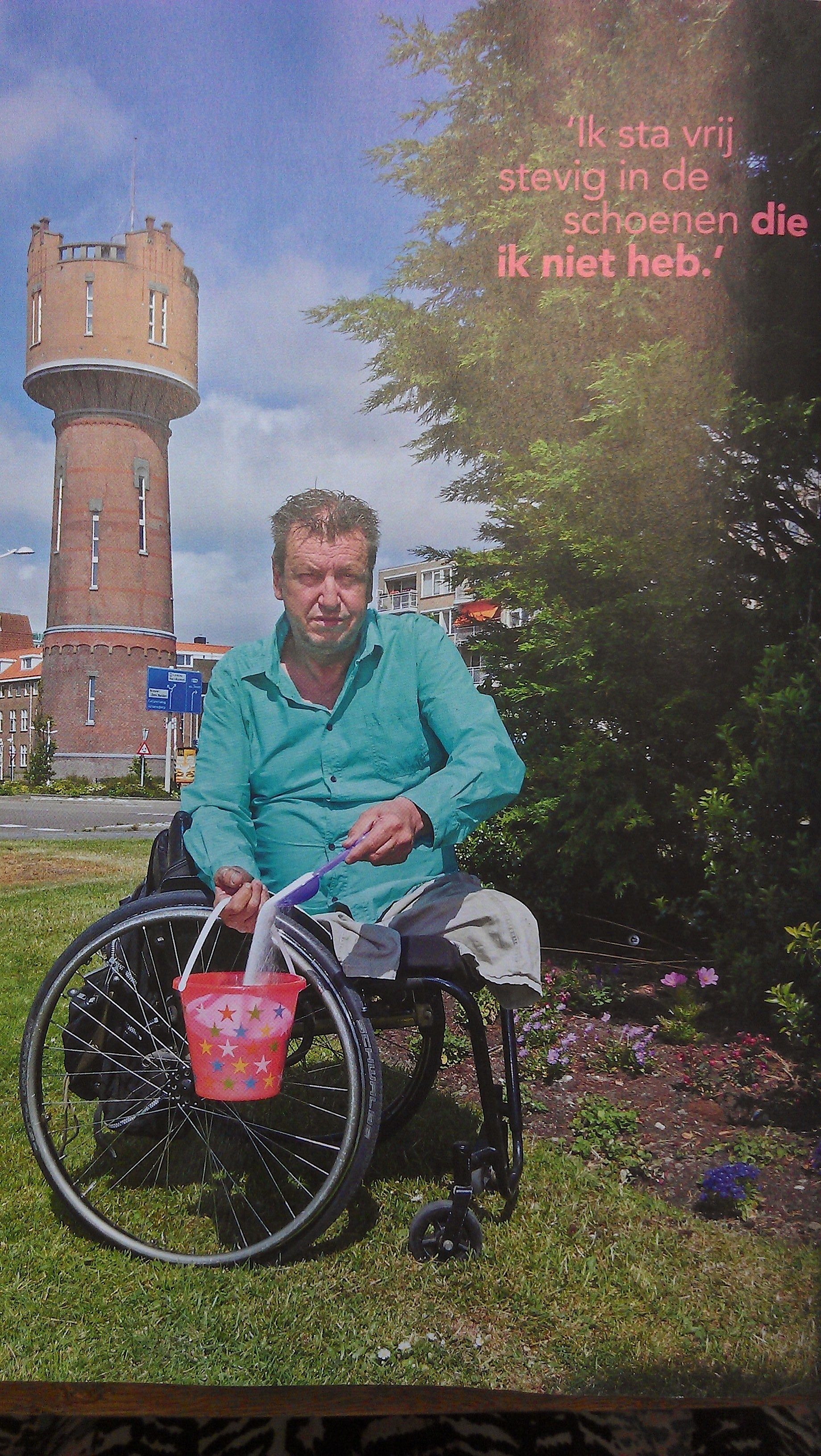 “Ik heb natuurlijk geen voeten, daar begint het al mee. Eigenlijk heb ik besloten dat het me nooit meer te heet onder de voeten wordt. Na die aanslag heb ik heel lang eieren voor mijn geld gekozen. Ik ben jaren weggeweest. In 2003 hebben we gekozen om terug te komen naar Nederland. Ik wilde me niet meer laten verjagen. Ik blijf gewoon staan, ook als het moeilijk wordt. Ik heb geen voeten, maar hoe heet de grond is maakt me niet zoveel uit. Ik sta vrij stevig in de schoenen die ik niet heb.”
