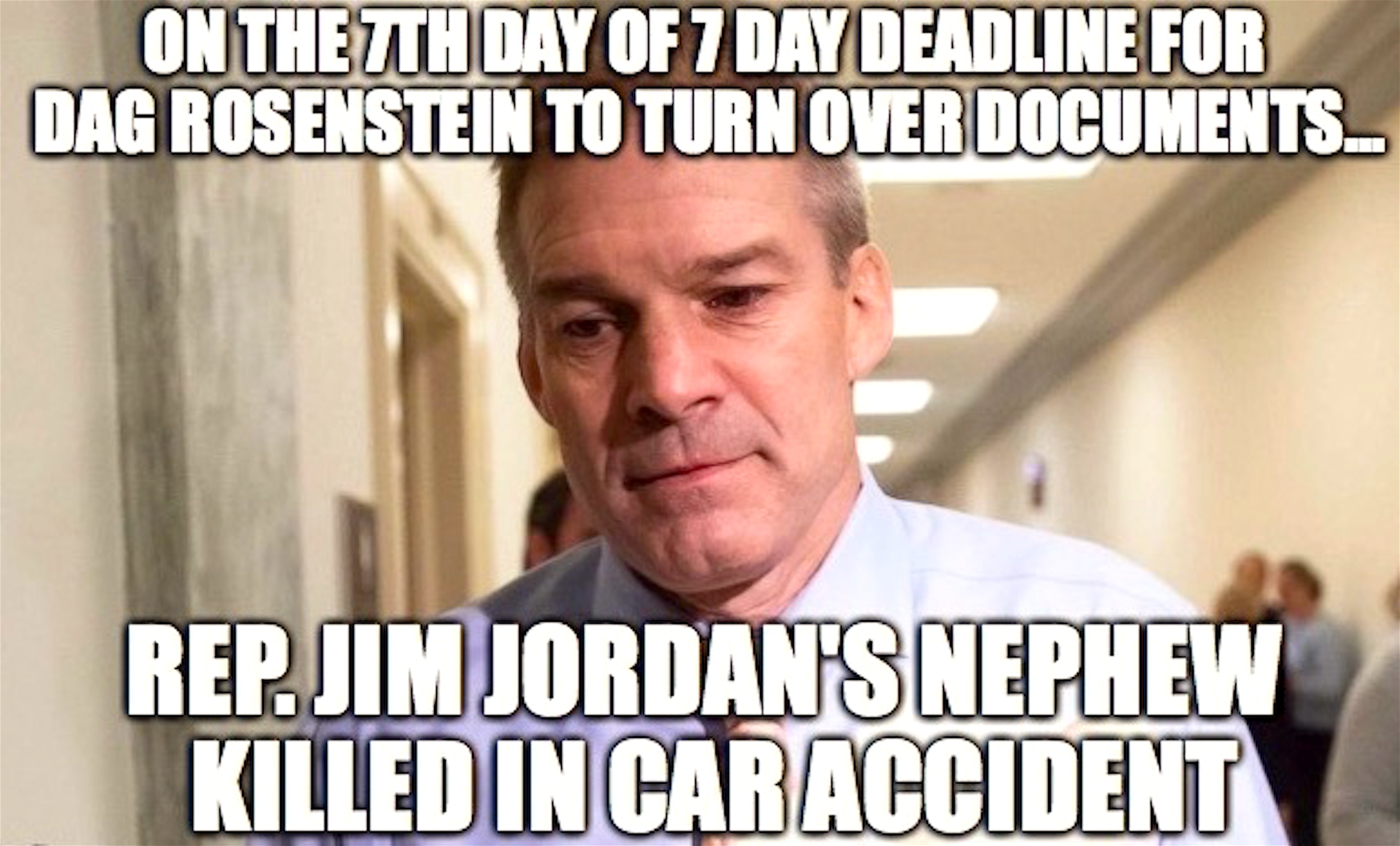 Jim Jordan’s nephew, Eli Stckley was killed Thursday night when his 2004 Nissan Frontier pickup left the roadway on Interstate 74 in Henry County Illinois. Was he killed by the deep state?