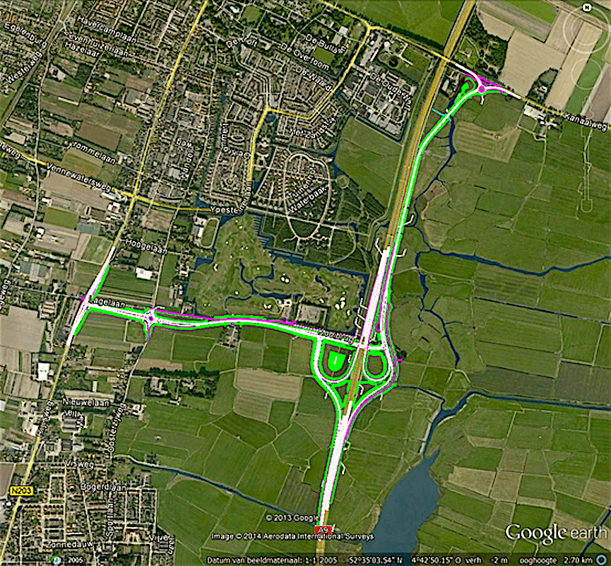 – Het is onjuist, dat de Aansluiting leidt tot minder auto kilometers; de meest directe weg is en blijft de N203/Straatweg. Het eventueel instellen van eenrichtingsverkeer in de dorpskernen om het effect van de Aansluiting op te vangen, zal leiden tot méér auto kilometers.