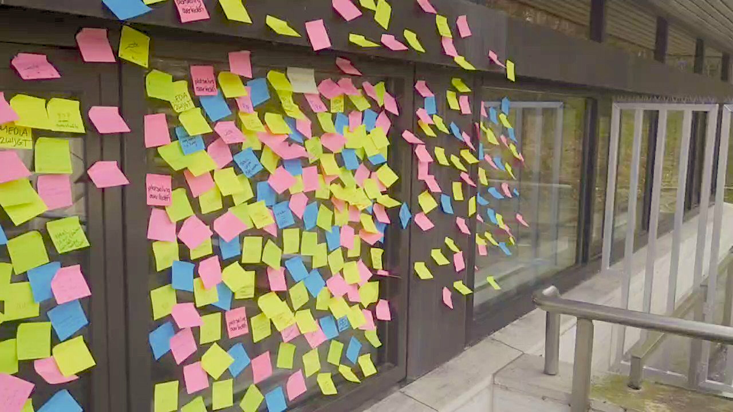 More than 14.000 Post It’s on the Nederlandse Omroep Stichting (NOS) Building, 4 februari 2023