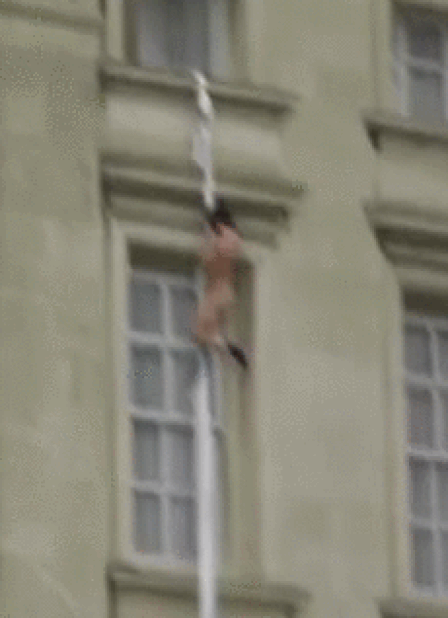 ਬਿਨ੍ਹਾਂ ਕੱਪੜਿਆਂ ਦੇ ਆਦਮੀ ਬਕਿੰਘਮ ਮਹਿਲ ਤੋਂ ਹੇਠਾਂ ਉਤਰਦਾ ਹੋਇਆ