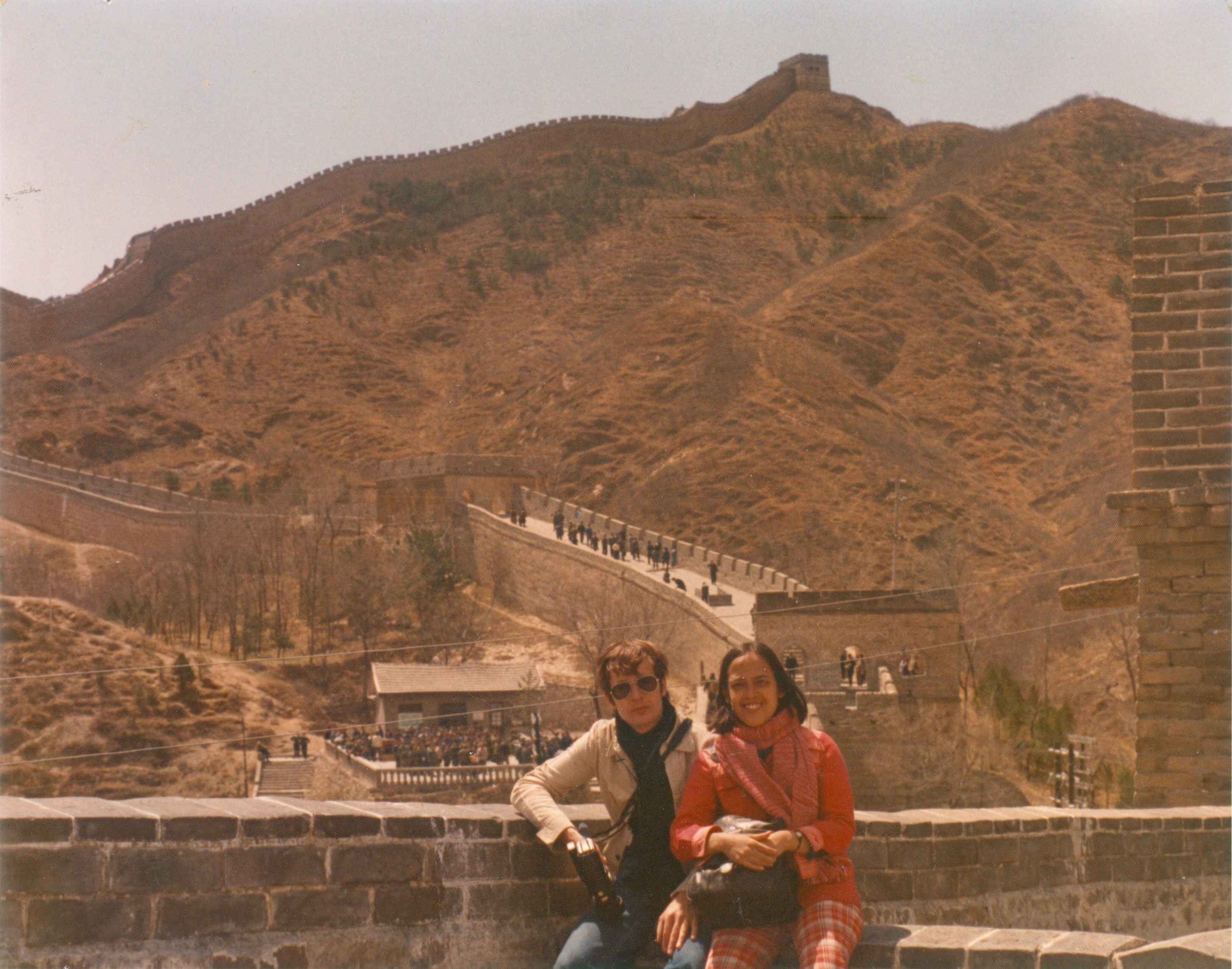 Ja, ik zit hier op de Chinese Muur, met Patty, mijn eerste echtgenote. Het is begin jaren zeventig, Mao is nog springlevend, de Culturele Revolutie is op haar hoogtepunt, op straat zwaaien miljoenen fietsers met het rode boekje in de hand naar ons, en elke dag worden wij getrakteerd op klassen vol schattige schoongeboende kindertjes die voor ons zingen en dansen op het schoolplein. Het lot van een onderwijsuitgever op werkbezoek in China.