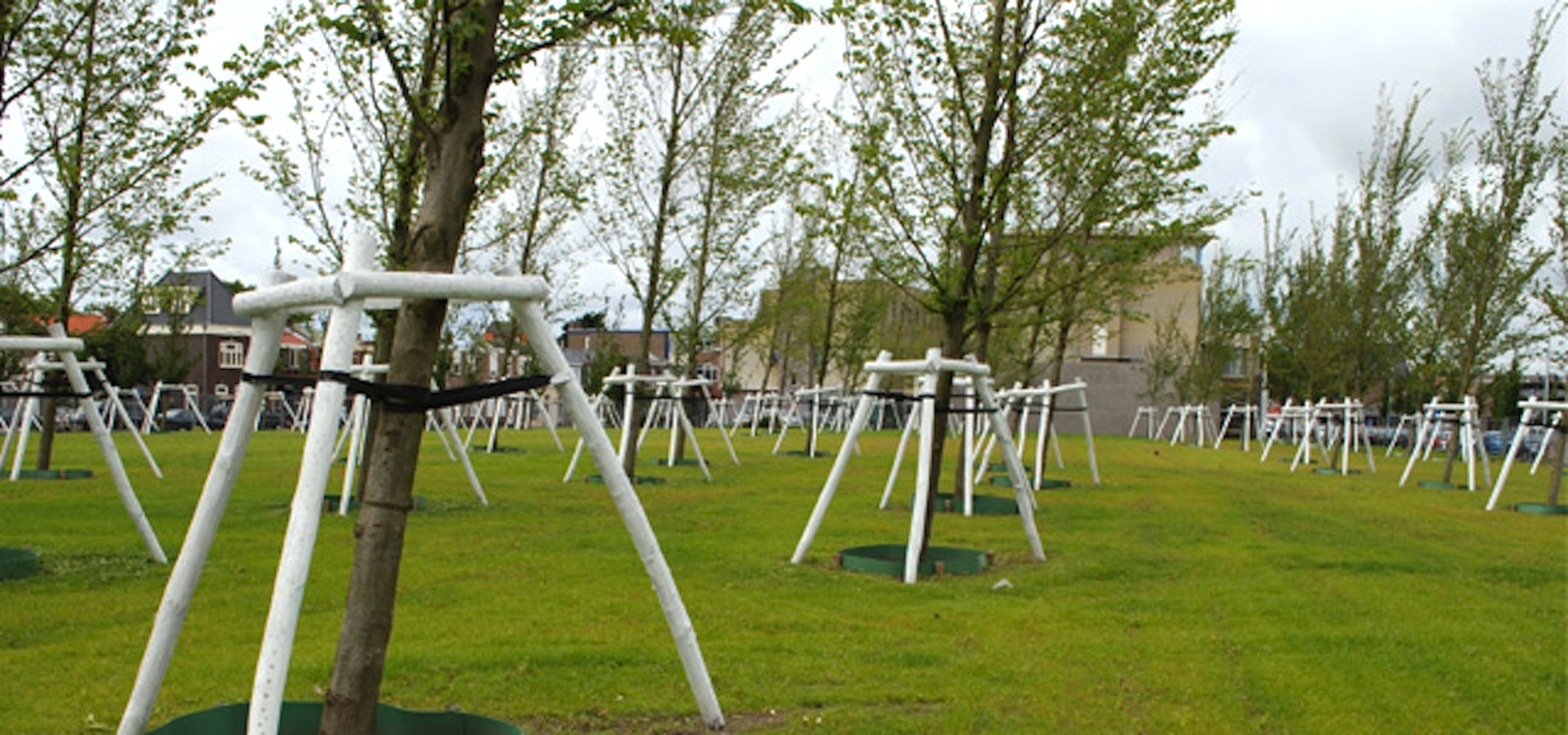 One of the first projects that is now under construction is the new city park, characterized by its prominent trees. The elms are planted in an eight degree angle, as if they were formed by the onshore wind. It refers to the leaning trees that can be found in the surrounding landscape of Den Helder.