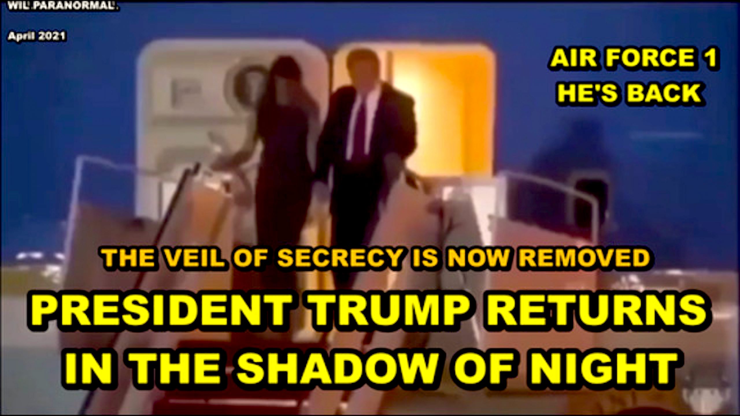 Veil of Secrecy removed, President Trump returns in the Shadow of Night (foto Bitchute)