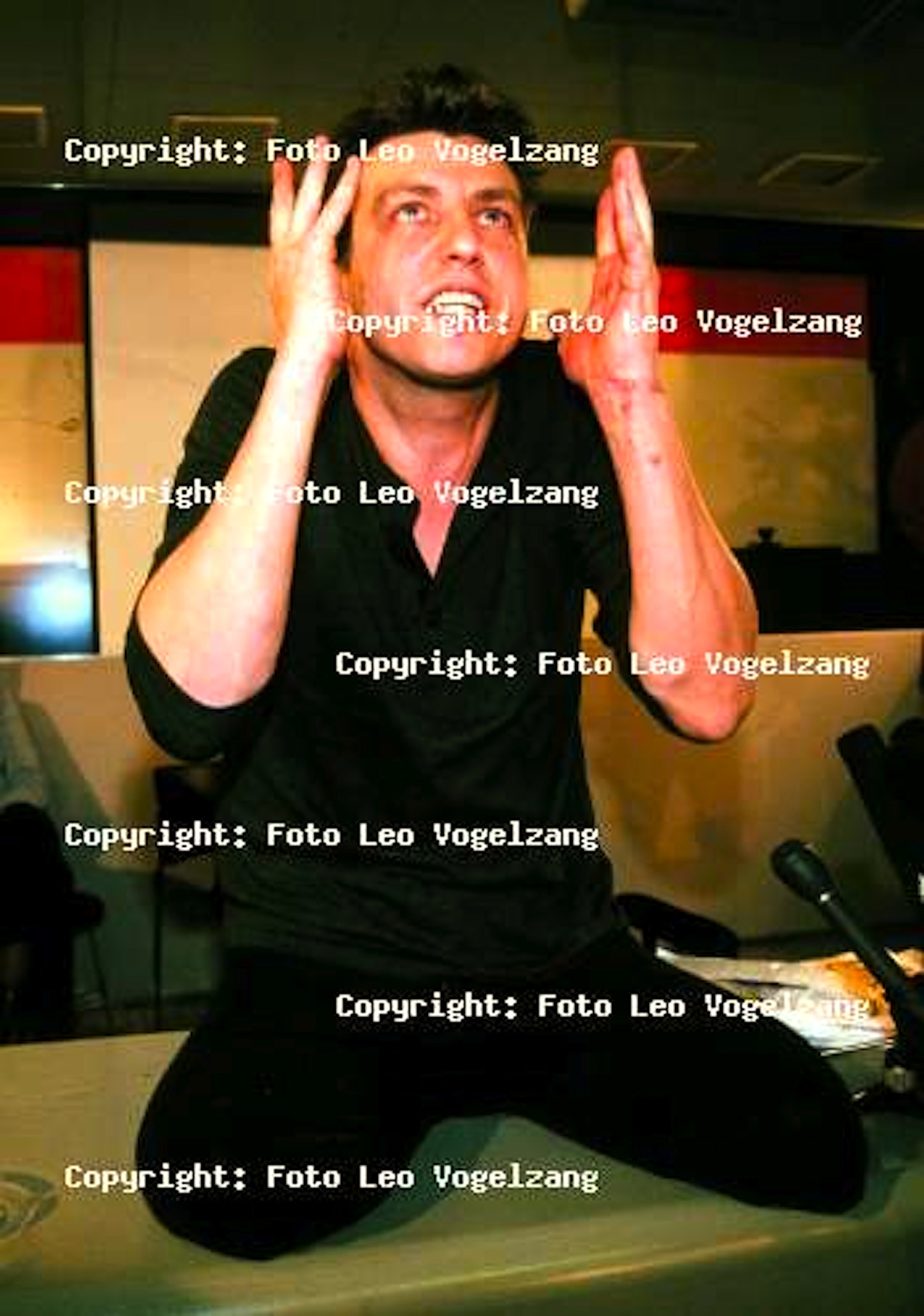 Het publiek moet zelf de boodschap destilleren. Zelfs zingt Rob Scholte een liedje, hem toegestuurd door zijn neefje. “Tien kleine visjes, die zwommen naar de zee . . .” Dat geeft bizarre taferelen. Scholte met zijn stompjes op tafel, zingend. “Blub, blub, blub”, terwijl de fotocamera’s bliepen en zoemen en razen. Het liedje gaat over haaien en andere gevaren die de visjes tegenkomen op hun weg. Micky nipt op de achtergrond uitdrukkingsloos een glaasje water.